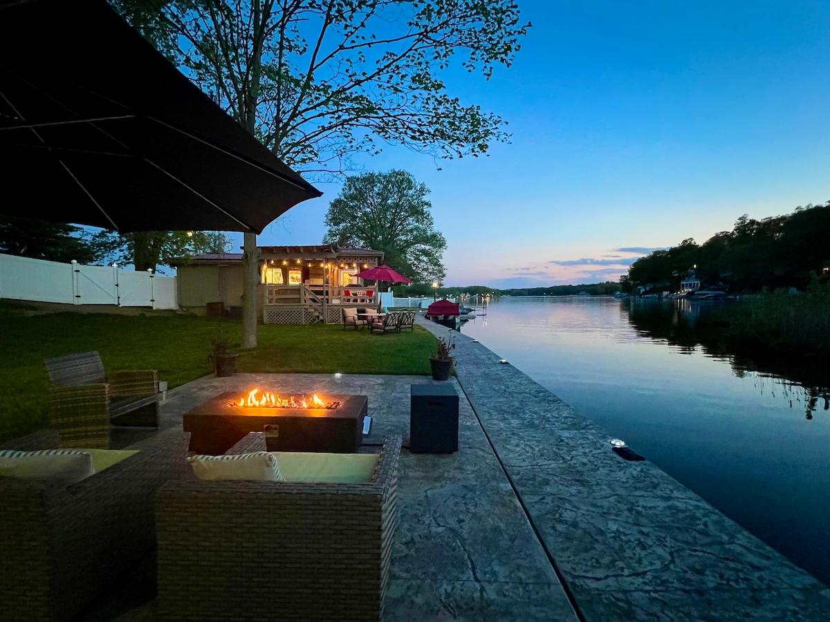 Jake's Place est sur un beau lac privé où tous les sports sont pratiqués (toutes les réglementations DNR s'appliquent). C'est l'endroit idéal pour votre prochaine escapade en famille. Lac de source, très propre et fond sableux. Cette propriété a accès à un deuxième terrain vide pour une cour supplémentaire. Plusieurs jeux intérieurs et extérieurs, pédalo, 4 kayaks et un foyer pour se détendre après une belle journée sur/dans le lac. La maison de Jake fait face à l'ouest pour une vue magnifique sur le coucher de soleil pour terminer votre journée.