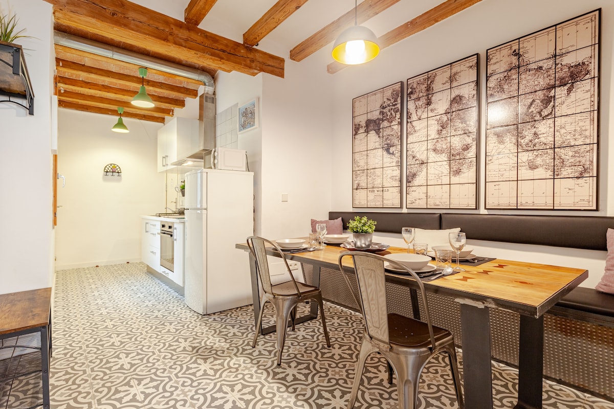 Bienvenue dans notre appartement moderniste situé dans le quartier animé de Mercat de Sant Antoni à Barcelone. Nichés dans un bâtiment historique magnifiquement rénové, nous avons préservé l'attrait de l'architecture moderniste : de hauts plafonds, des sols carrelés originaux. Très calmement situé à l'arrière de l'immeuble, il dispose d'une petite terrasse privée. Commodités modernes : cuisine équipée, climatisation centrale, Internet haut débit, télévision connectée. À seulement 10 minutes à pied du centre historique. Accès direct au métro juste à l'extérieur.