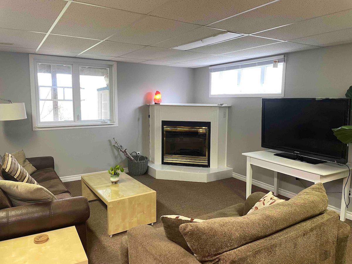 Bienvenue dans notre charmant appartement au rez-de-chaussée dans la belle ville d'Orillia ! Cet espace est adapté aux familles ou aux petits groupes à la recherche d'un séjour confortable dans un emplacement pratique. Il s'agit d'une maison entièrement meublée qui dispose de trois chambres, d'une salle de bain, d'une cuisine entièrement équipée avec tous les éléments essentiels nécessaires pour préparer vos propres repas. Le salon est lumineux et confortable avec une télévision intelligente Samsung de 43 po avec Netflix, une connexion Internet haut débit illimitée et une table à manger spacieuse de 6 places.