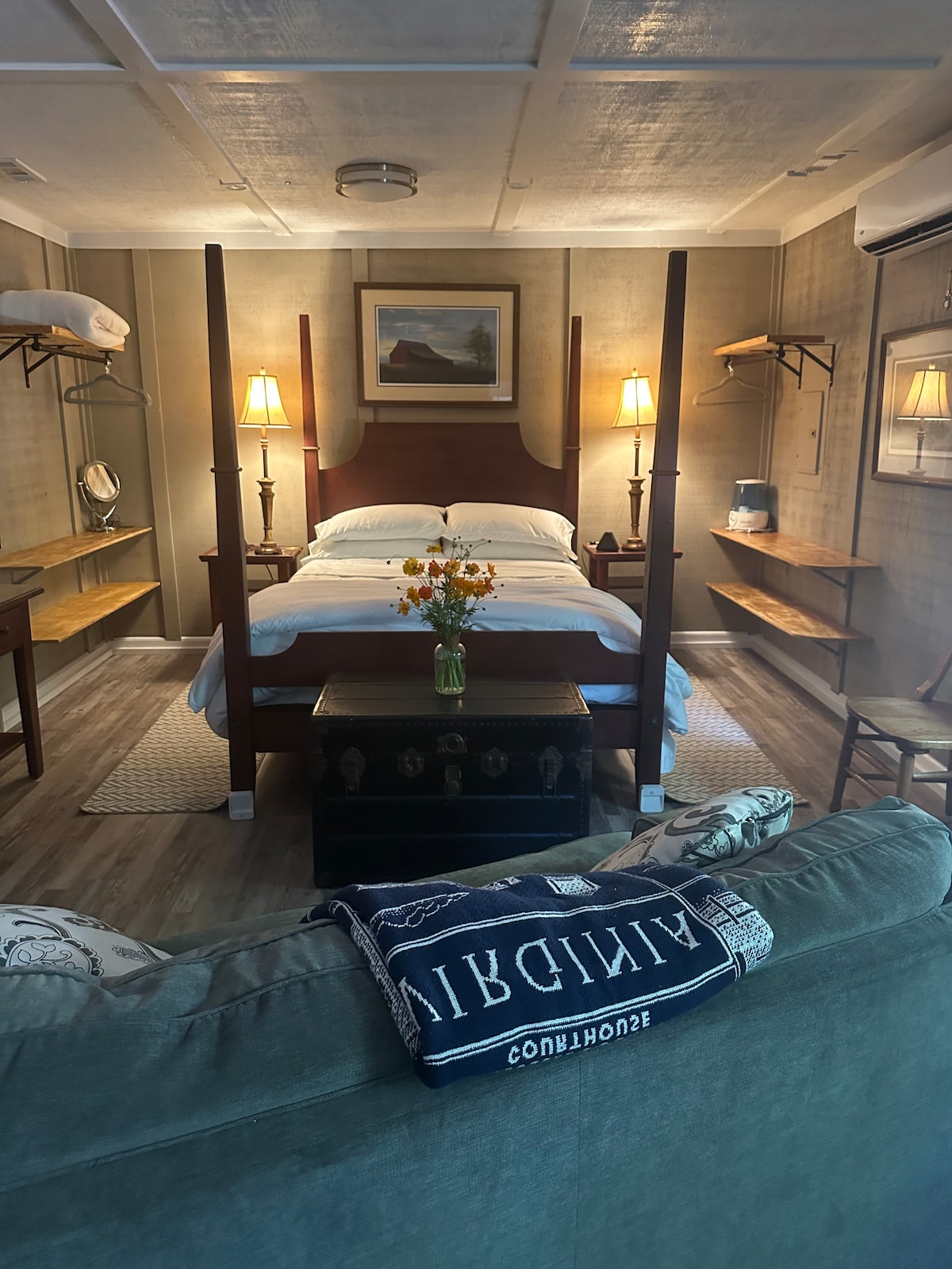 Séjournez dans notre grange de luxe rénovée, The Lodge at Twin Fields Farm, une propriété historique du National Register. Ce charmant gîte dispose de 3 suites de luxe : Magnolia et Myrtle Suites avec 4 lits simples, kitchenettes et salles de bains privatives, et la suite Dogwood exclusive avec un lit King (peut être divisé en lits jumeaux) et une salle de bains privative. Parfait pour les week-ends de célibataires, les quatuors de golf et les excursions de chasse. Profitez de deux cuisines ultramodernes et d'étals de granges préservées pour une véritable expérience de gîte à la ferme.