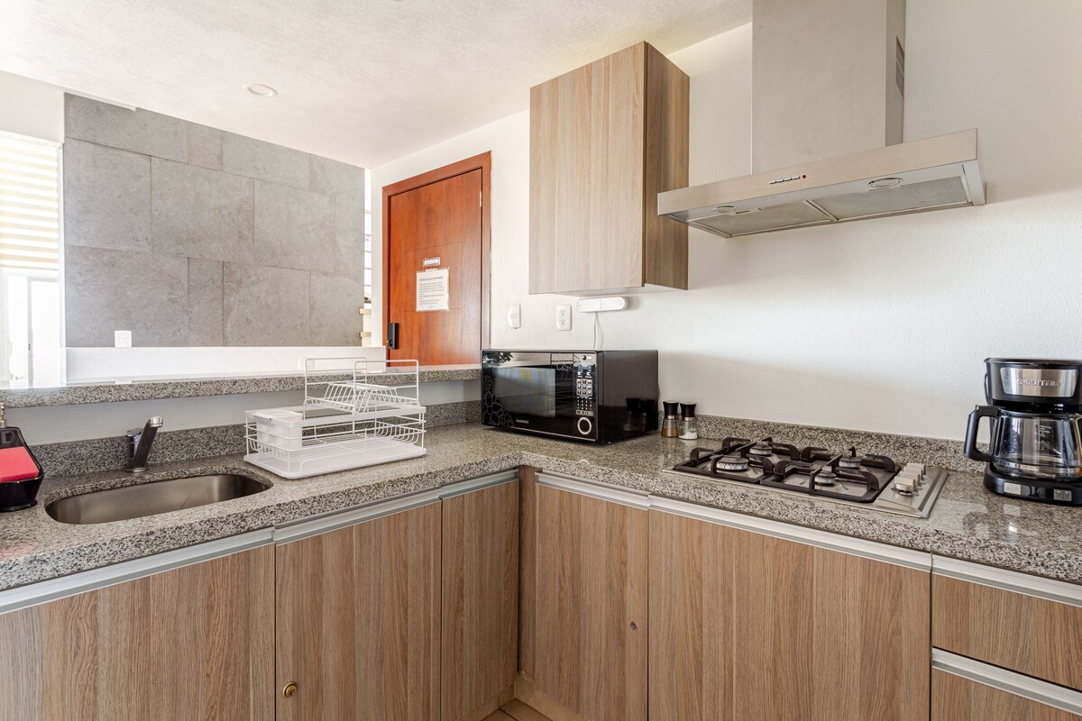 Profitez de l'endroit idéal pour vous détendre en famille, profitez de la piscine, du jacuzzi et d'un jardin de rêve avec des arbres géants, vous serez si calme que vous ne penserez pas à la proximité de tout, à moins de 5 minutes du centre de Cuernavaca. Profitez d'un accès facile depuis la CDMX, à quelques minutes de la cathédrale, du jardin Borda, et d'une infinité de restaurants pour en profiter. Cet appartement à Cuernavaca avec un style moderne est l'endroit idéal pour séjourner et profiter de ses commodités.