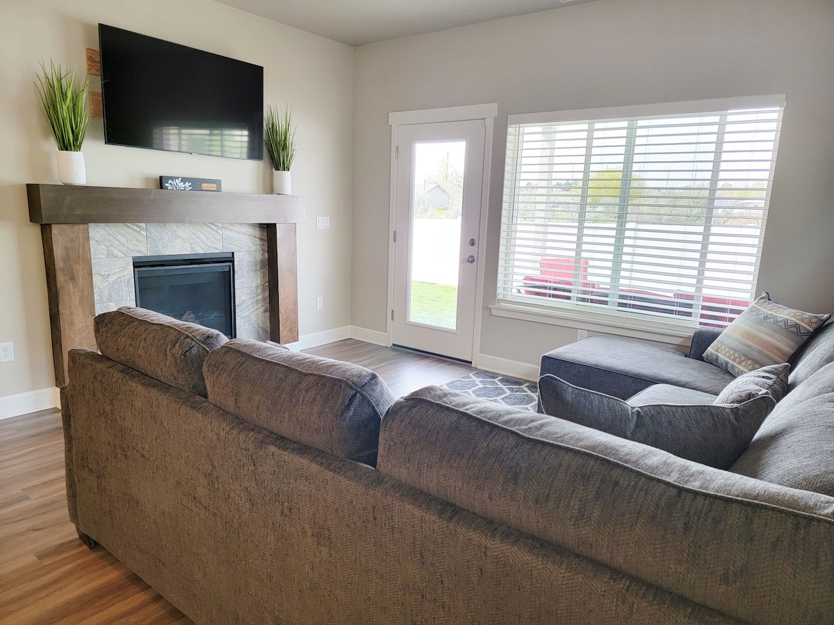 Séjour et jeu confortables situés à côté du 17e trou du terrain de golf Big River ! Spacieux appartement entièrement meublé de 1250 pieds carrés avec 3 lits et 2 salles de bain à McNary. Les caractéristiques spéciales comprennent un foyer au gaz, une télévision de 75 po et un patio situé directement sur le terrain de golf. Cuisine entièrement approvisionnée ! Il s'agit d'un complexe calme avec un parking hors de la rue et un trajet facile depuis l'Interstate 84 ou la HWY 730. Tout près d'Umatilla, Hermiston et à seulement 30 minutes des Tri-Cities.