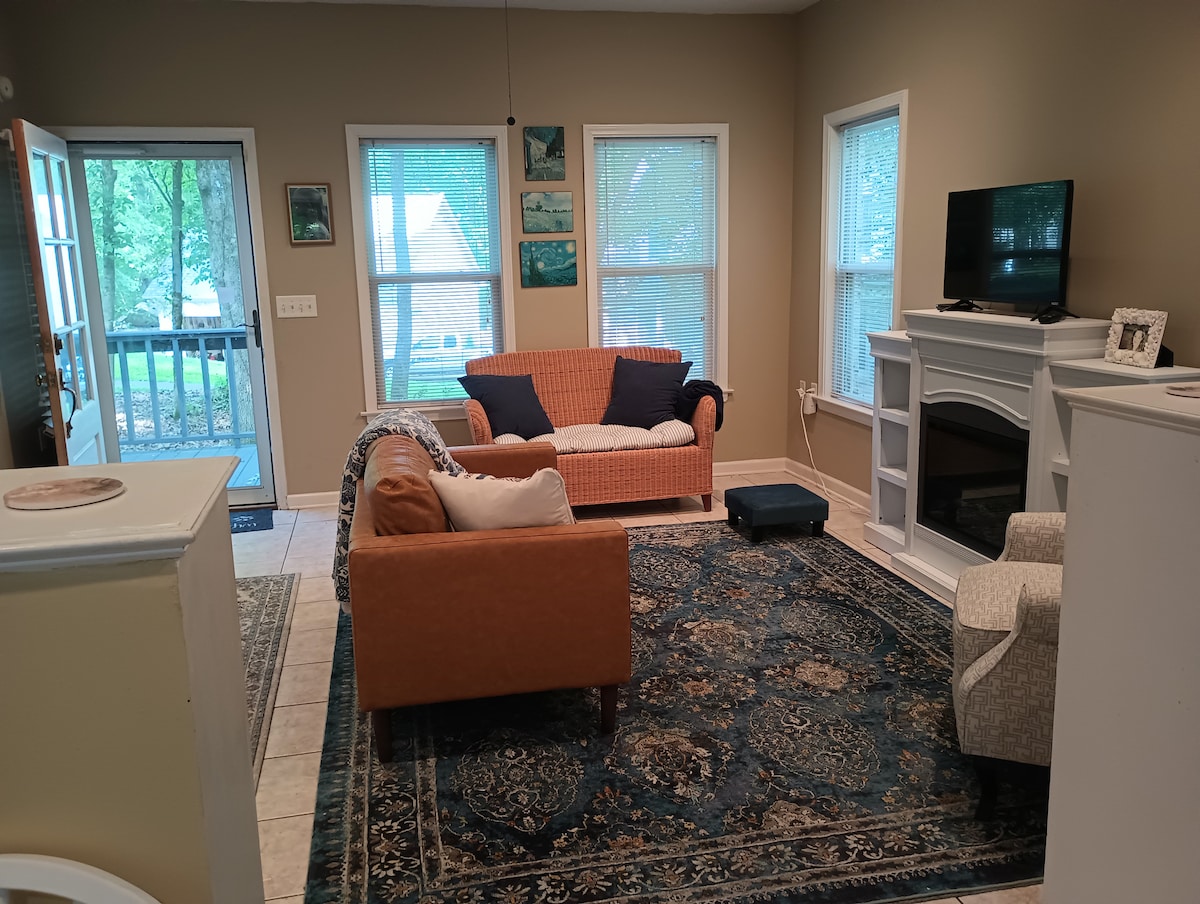 Entrée extérieure privée. Il n'y a pas d'accès de la maison principale au duplex et vice-versa. Privé ! Pas d'espaces partagés, pas de frais de ménage cachés. Ce duplex confortable dispose d'un salon avec kitchenette (mini-réfrigérateur, micro-ondes) et d'une salle de bain et est attaché à notre maison. Peut accueillir 2 adultes et jusqu'à 2 enfants en bas âge. Nous n'acceptons pas les voyageurs de Memphis et nous ne pensons pas que notre propriété soit adaptée aux escapades romantiques, étant donné que nous vivons à côté et que nous avons des enfants et des chiens