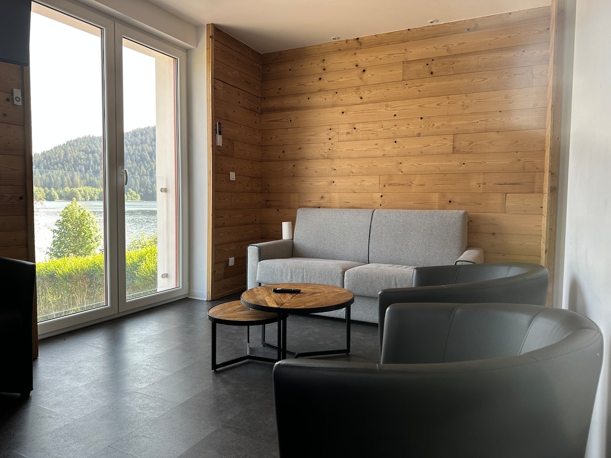 Idéal pour une escapade en famille ou entre amis, le logement de 90 m² est l'endroit parfait pour un séjour de détente ! Vous disposerez ainsi d'un grand salon séjour lumineux, une cuisine moderne entièrement équipée, deux chambres, une salle de bain ainsi qu'un vaste extérieur avec un jardin donnant directement sur le lac ainsi qu'une terrasse sur pilotis avec un jacuzzi pour se prélasser devant ce magnifique panorama ! Linge de lit et serviettes fournis.