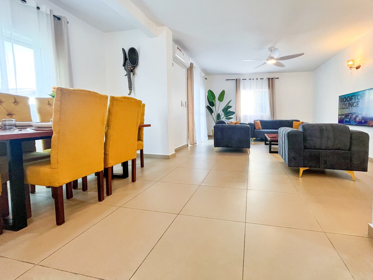 Détendez-vous dans cet espace calme et élégant de 2 chambres situé à kotto Douala , pas loin de la route. Complètement équipé, il est idéal pour les longs et courts séjours.Équipé de 2 balcons , internet illimité haut débit , Canal Sat ,smart TV avec YouTube , Amazon prime et netflix intégrés. Parking gratuit , ballon d eau chaude , machine à laver , cuisine entiérement équipée avec cafetiére . Climatiseurs dans les 2 chambres et salon , 2 grand ventilateurs . l’apartment est au 3 eme étage
