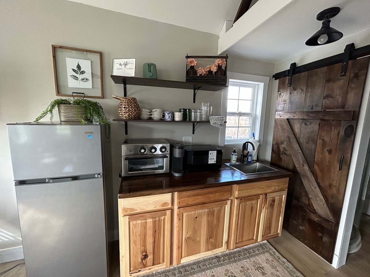 Nouveau chalet à seulement 5 minutes de la ville de Somerset et 5 minutes du lac Cumberland ! Chambre confortable avec lit King Size et caractéristiques personnalisées partout. Sortez sur la terrasse de votre suite parentale et prenez un café avec la nature ! Salle de bain pleine grandeur avec carrelage personnalisé. Terrasse arrière qui surplombe les bois et la faune. Parfois, il y a un voisin qui a un chien qui aboie à quelques maisons de là, je suis désolé si c'est le cas, ça n'arrive pas souvent