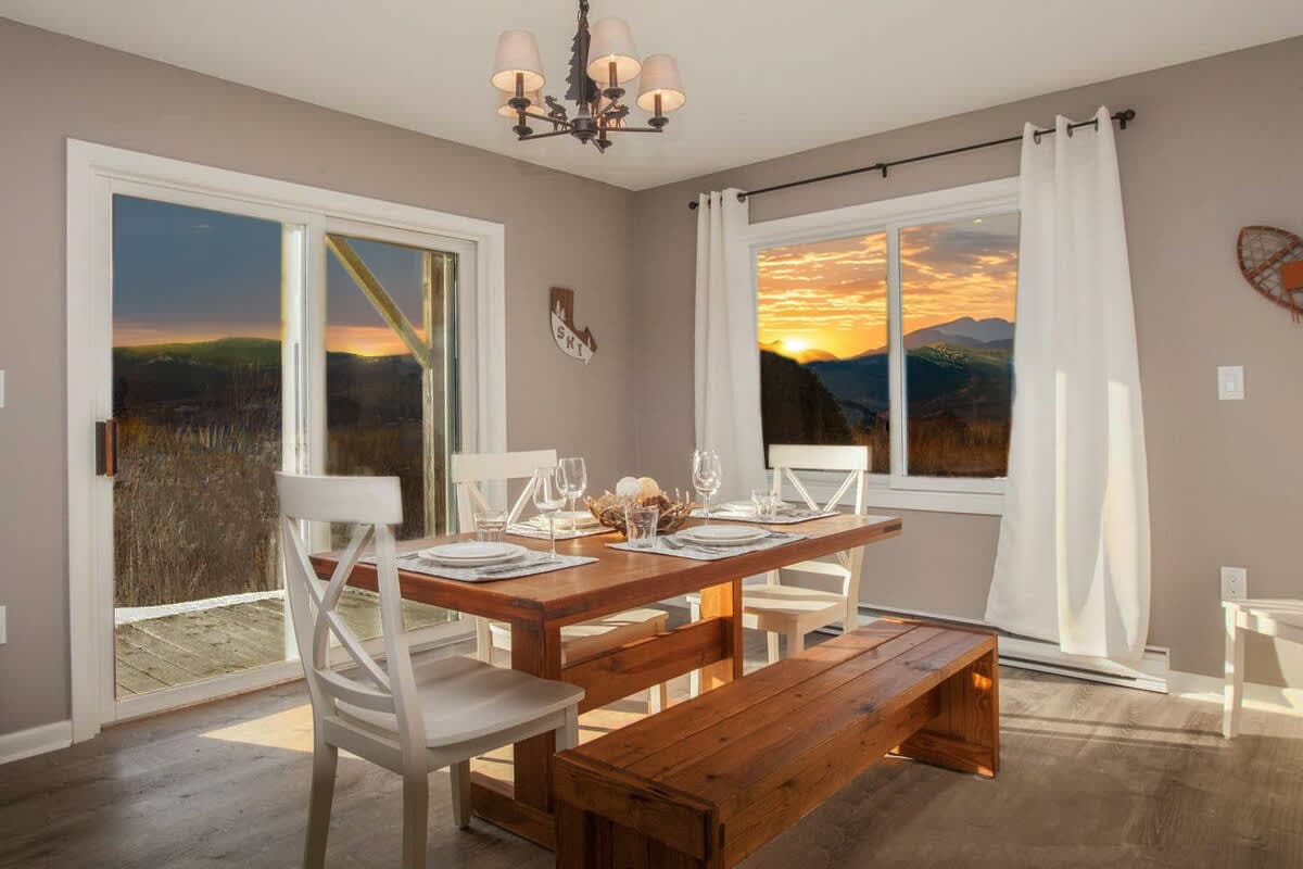 Bienvenue dans notre chalet avec vue sur la montagne ! Avec une vue magnifique sur la montagne, cette maison est située au centre des attractions de la région ! Le Mountain View Grand Resort se trouve juste en bas de la route. Bretton Woods et Cannon sont à quelques minutes en voiture. Sentiers de randonnée, lacs, pistes de ski et de motoneige à proximité ! Proche de Littleton, Bethlehem et Lancaster ! Profitez de la cour arrière paysagée avec foyer et patio abrité. Restez à l'intérieur et profitez de la vue depuis le solarium, ou blottissez-vous sur le canapé dans le salon confortable avec poêle à bois.