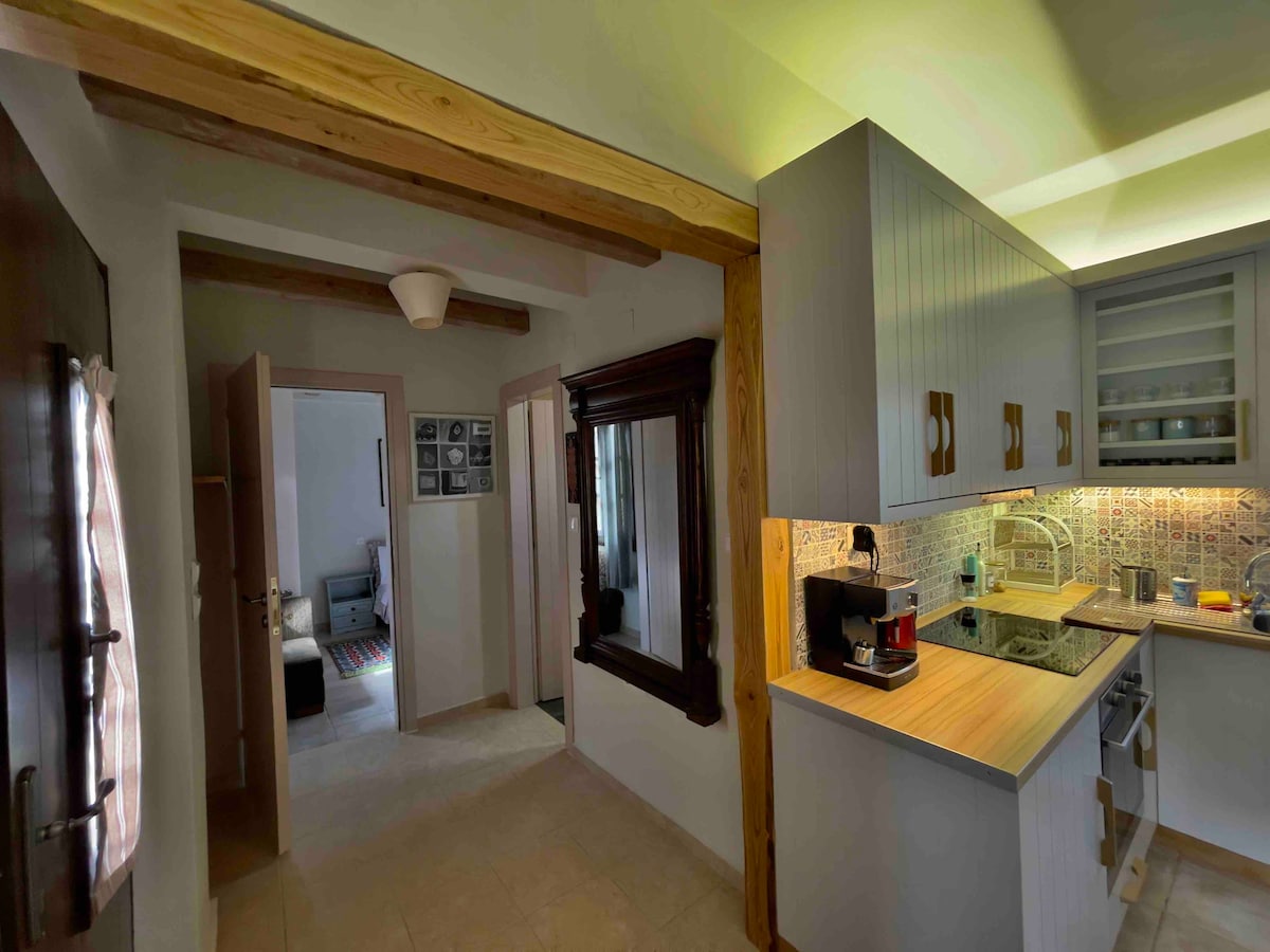 Studio confortable à seulement 1 min de la plage dans le centre d'Agios Ioannis. C'est notre maison de vacances parfaite : simple, élégante et dans le meilleur endroit. Juste au-dessus de la promenade, à quelques pas de la plage, des tavernes et de tout ce dont vous avez besoin - pas de collines à gravir, juste une vie balnéaire facile. Nous avons meublé le logement avec soin, en mélangeant des pièces de qualité avec des trouvailles vintage pour que vous vous sentiez comme chez vous. Si vous voulez une base simple et élégante pour profiter du soleil, de la mer et du style de vie décontracté de Pélion, vous l'avez trouvé.
