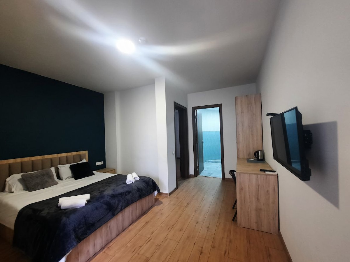 Chambre moderne et confortable au cœur de Tbilissi. Chambre entièrement meublée avec salle de bain avec toutes les commodités, y compris un mini-réfrigérateur et une bouilloire. L'arrêt de bus et toutes sortes de supermarchés et pharmacies sont à 80 m (1 min). Il est situé dans le centre de Tbilissi dans le quartier le plus touristique, le quartier est très calme et convivial. À proximité, vous pouvez visiter le parc Rike, la place Orbeliani, le pont sec, des monuments historiques et culturels, des bars et autres.
