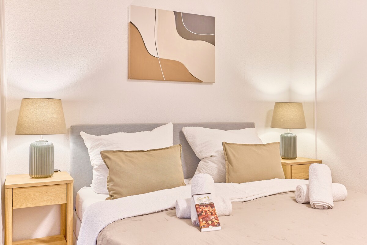APARTMENT TILLI MIT TRAUMBLICK IN DER 2. ETAGE ❤️ Ruhig und doch zentral : In 5 Min zur Innenstadt Komplett ausgestattete Küche 2x180 King Size Box Spring Bett Bad mit Doppelwaschbecken Sitzecke mit Bank u. Stühlen Panoramafenster Ledersofa mit Hocker Kleiderschrank Balkon Parkplatz direkt vorm Haus INCLUSIVE: Handtücher Bettwäsche Kaffeebohnen, Milch, Zucker Gewürze, Tee, Seife, Spülmittel, Duschgel, Fön.....etc... Obst bzw. Knabbereien Teebar mit Gebäck 1 Mineralwasser Schlummersherry