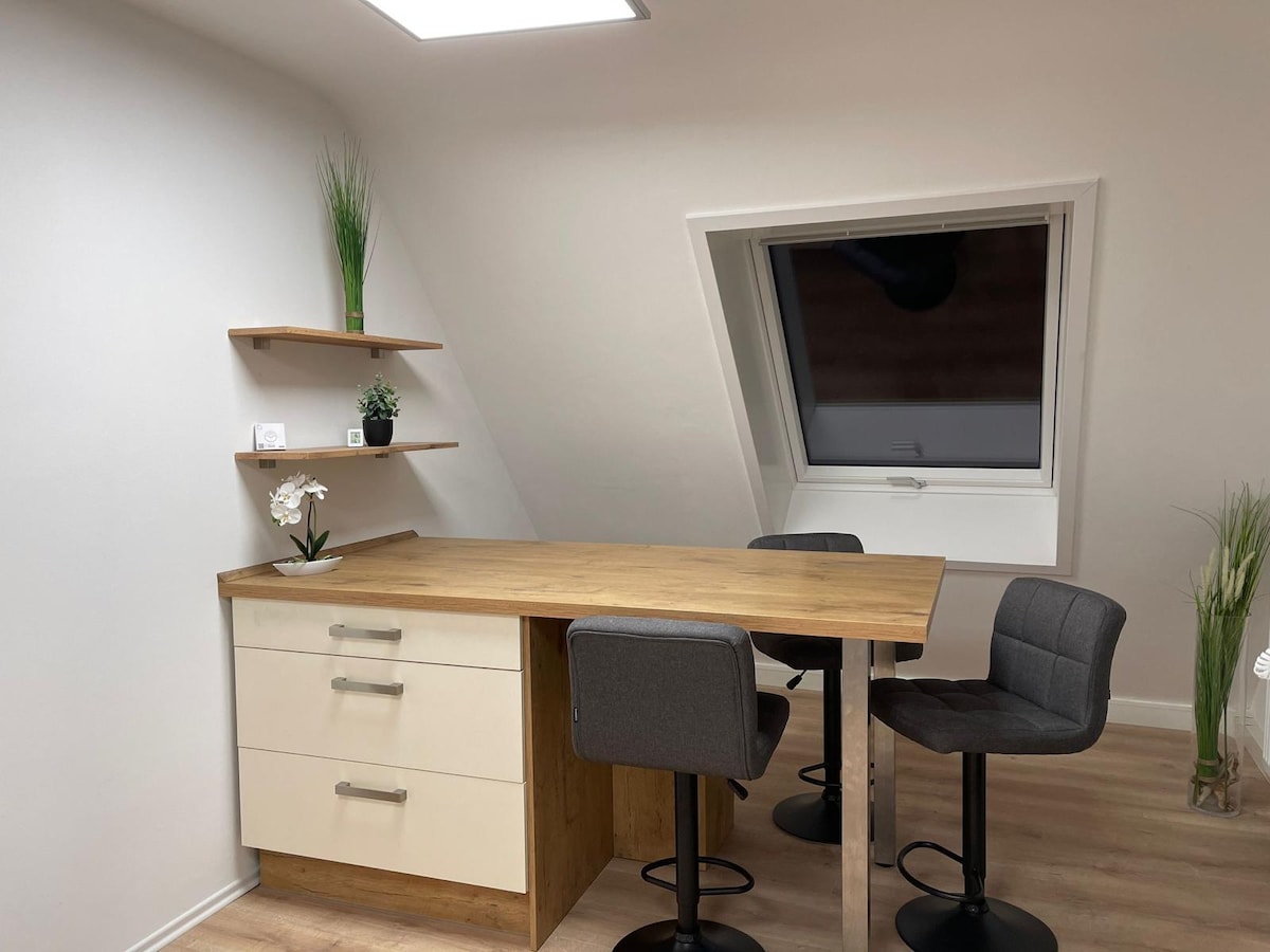 J'aimerais vous accueillir dans mon appartement de vacances élégant et lumineux au 1er étage, dans lequel j'ai mis beaucoup de passion. Il y a 2 chambres séparées, chacune avec un grand lit, plus un canapé-lit et un lit d'invité dans le salon. 1 grande salle de bain - douche + baignoire, ainsi qu'un coin repas et un coin travail. Veuillez noter : pas de cuisine . La cuisine est actuellement en construction. Le café+le thé est gratuit. Réfrigérateur, micro-ondes, cafetière, 2 lits bébé de voyage avec linge de lit disponible.