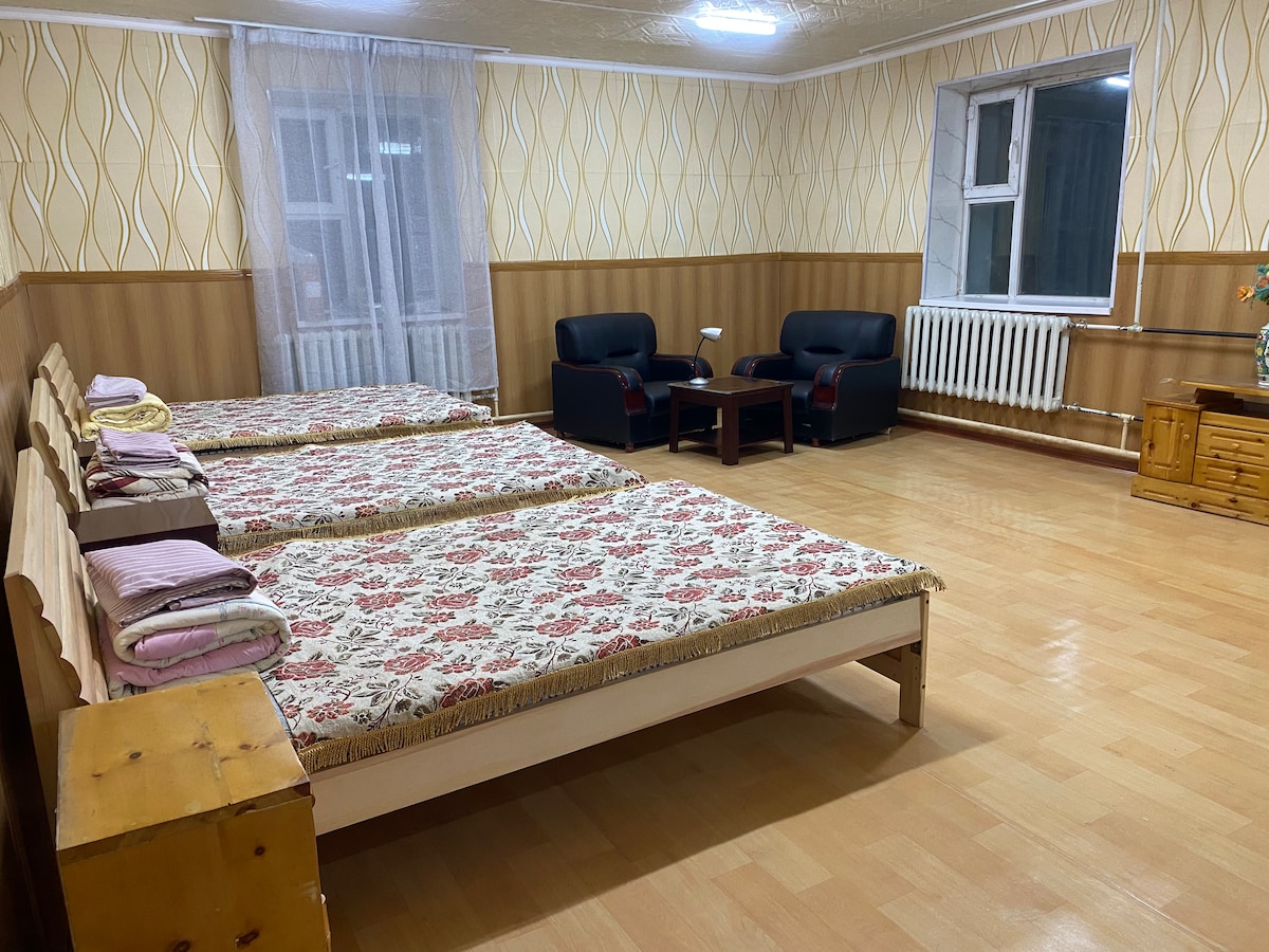 Bienvenue chez nous ! Pendant la saison estivale, nous sommes occupés à organiser des visites et à séjourner la plupart du temps dans notre nouveau Ger-Camp, à environ 12 km de Murun ! Nous vous laissons donc notre maison et notre intérieur - vous vivrez donc sur le chemin d'une famille mongole normale de ce quartier! Vous avez une cuisine, un coin repas et un salon et une chambre à coucher séparée à l'étage et les toilettes partagées à l'extérieur! Nous espérons donc que vous trouverez tout ce dont vous aurez besoin et que vous vous sentirez chez vous pendant votre séjour! Amusez-vous bien!