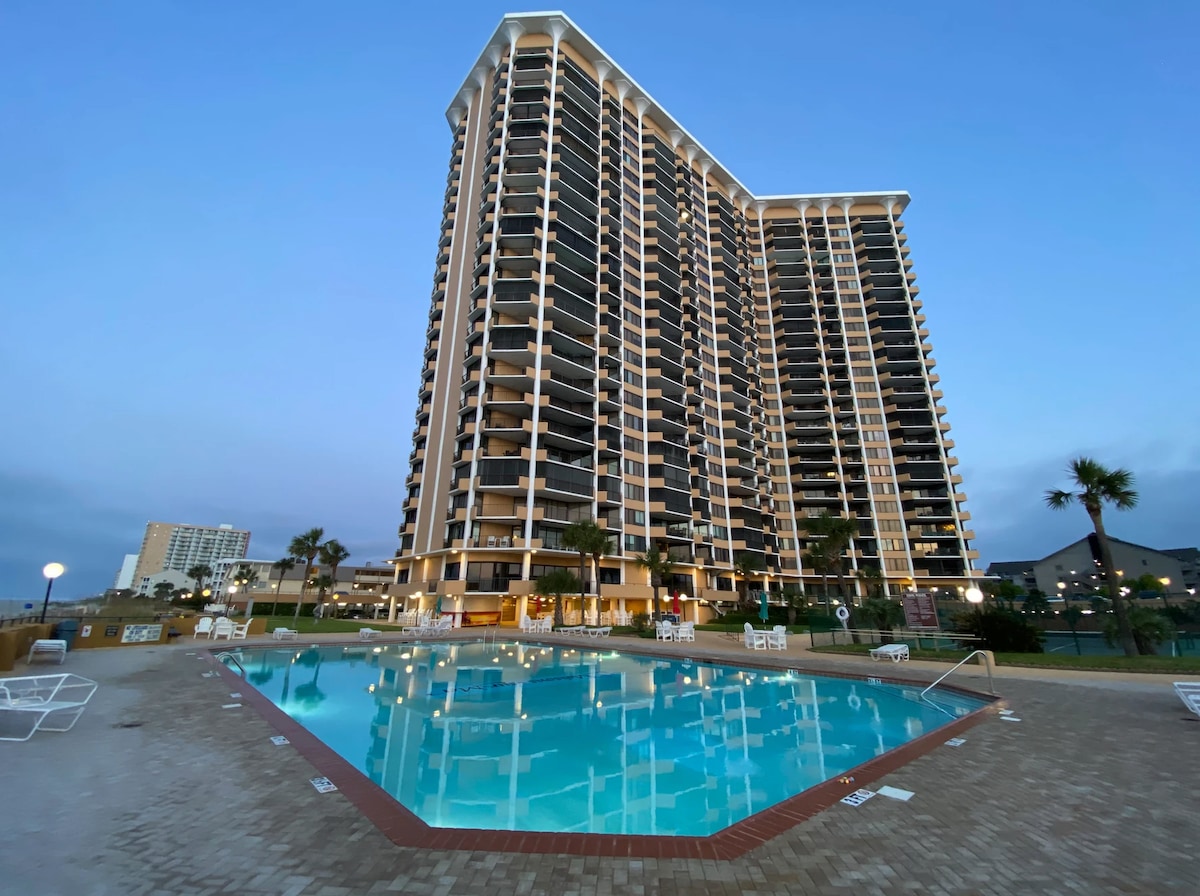 🌟🌟🌟🌟🌟 Welcome💛 to our highly sought after, newly renovated, direct oceanfront condo, where modern comfort meets coastal charm. Enjoy breathtaking views, a plush king bed, and cozy touches throughout. Relax by the sleek electric fireplace or sip your favorite drink from the coffee &wine bar. The stylish interior features contemporary design, warm lighting and inviting decor. Just steps from the sand, this peaceful retreat is perfect for a romantic getaway or relaxing beach escape.