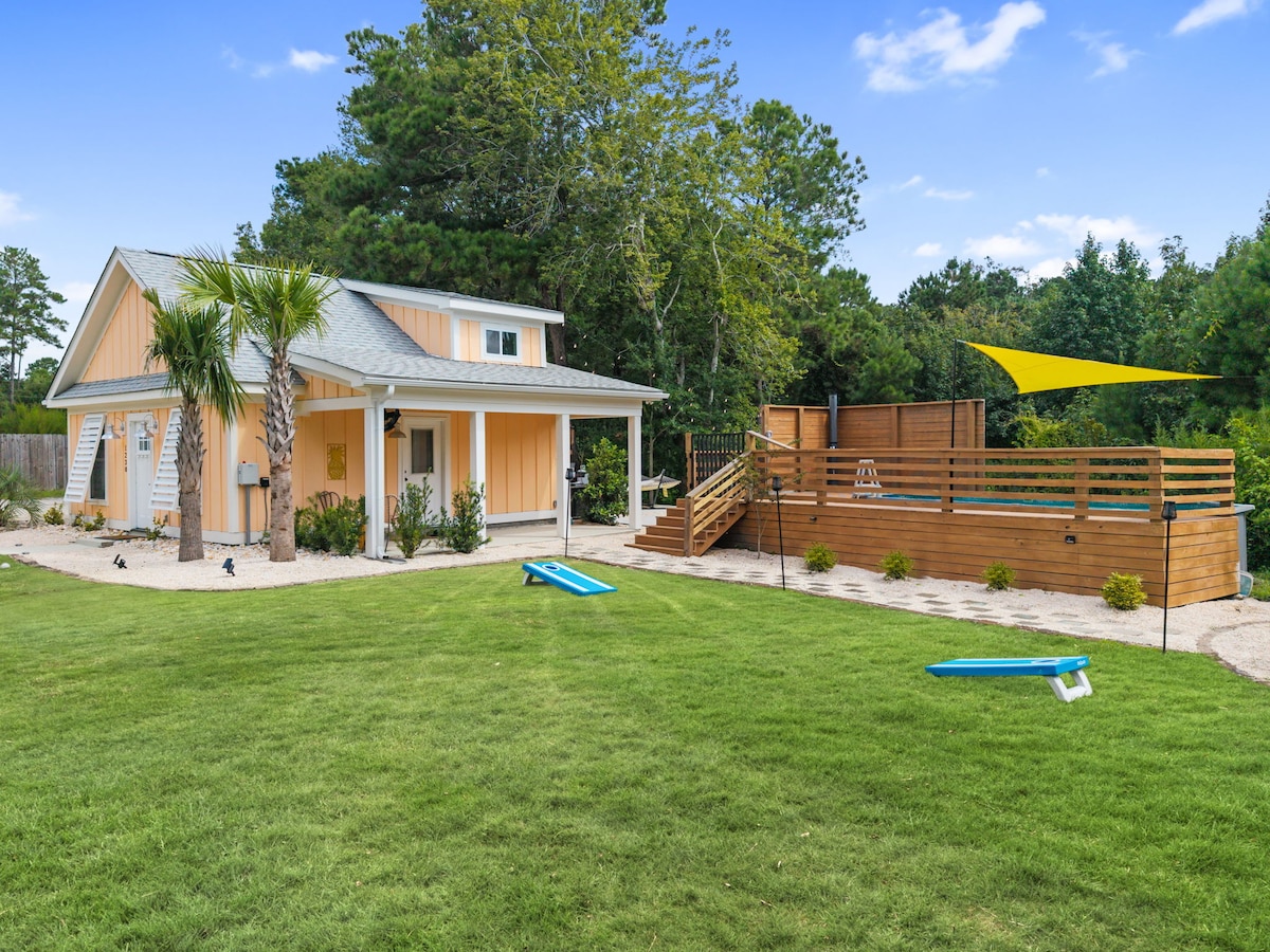 Téléviseur HD 🍿 85", sièges de théâtre + éclairage au néon. Films ou sports incroyables. 🏡🏡 2 maisons séparées (toutes les deux sont à vous). Parfait pour plus de 2 familles ou groupes lg.. À 🌊 3 kilomètres de la plage avec accès public au bout de notre rue ! 4 chaises de plage + grand chariot de plage inclus. Rénovation 💥 terminée en avril 2025, et nouveaux appareils électroménagers aussi ! Piscine 🌞 incroyable avec fontaines, éclairage personnalisé et nouveau hardscaping avec chaises longues autour de la piscine ! 🛌 Capacité d'accueil de 14 personnes facilement, confortablement. 🍽️ - Dîner sur le thème du bohème avec table lg pour les grands groupes.