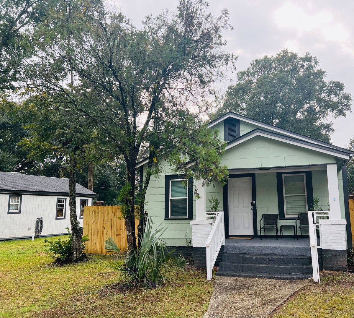 Belle maison d'hôtes calme et relaxante (anciennement l'atelier de ferronnerie de Whitney). Entrée privée. Dans le quartier historique d'East Hill, entouré de chênes et de pacaniers paisibles et imposants. Les portes françaises offrent beaucoup de lumière naturelle et une sensation d'ouverture et d'air. Patio privé. Quartier calme et historique, parfait pour les promenades ou les balades à vélo. À seulement 1,2 miles du centre-ville. À quelques pâtés de maisons se trouvent des cafés/petits-déjeuners, des restaurants, l'épicerie Publix, des pubs. À 15 minutes en voiture de la plage.