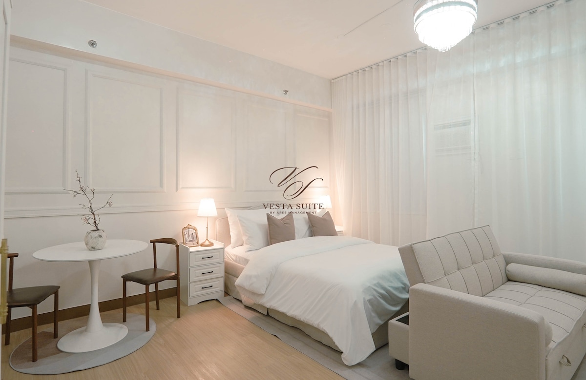 Profitez d'un appartement spacieux et entièrement meublé d'une chambre dans la suite de Niall, HOPE Residences, littéralement en face de SM Trece Martires. Parfait pour les familles, les groupes ou les séjours longue durée. Caractéristiques : 🛏️ une chambre confortable Wifi 📶 rapide + Netflix Accès à la 🏊 piscine (frais minimes) Avec un 🚗 stationnement 🍳 Cuisine ET salle À manger Avec ses boutiques, ses restaurants et ses divertissements à quelques pas de là, vous adorerez l'emplacement, la commodité et l'ambiance chaleureuse. Réservez dès aujourd'hui votre réservation pour un séjour inoubliable à Cavite !