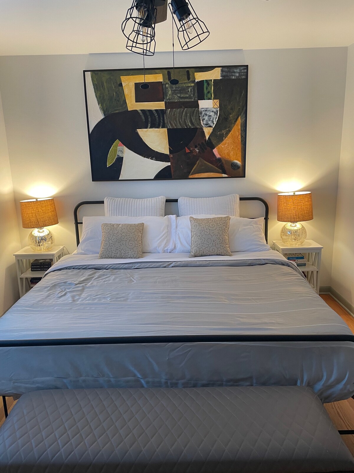 Découvrez le charme vintage de cet appartement datant de 1908. Cet espace récemment rénové est une retraite élégante, avec des plafonds de 10 pieds, des trésors d'art locaux et des draps moelleux. Un salon extérieur relaxant vous attend après une journée bien remplie. Les animaux de compagnie sont les bienvenus au cas par cas (contactez l'hôte). L'espace est un charmant appartement de deux chambres, une salle de bain au premier étage dans une maison historique de deux unités construite en 1908. L'appartement combine des détails historiques avec des équipements modernes tels que le chauffage central et la climatisation, un lave-vaisselle et un lave-linge et un accès à un sèche-linge. La Monroe House est à deux pas de l'historique Oak Park et à seulement trois pâtés de maisons de la ligne bleue CTA, ce qui fait du centre-ville de Chicago un trajet en train de 25 minutes. L'appartement comprend des équipements supplémentaires tels que : • Télévision connectée pour regarder n'importe quel compte que vous avez (Netflix, Hulu, etc.) • Climatisation centrale ; • Porches avant et arrière pour votre plaisir • Lave-linge et sèche-linge sur place. Juste à l'est se trouve le quartier historique d'Oak Park et un éventail d'attractions telles que : • Zoo de Brookfield • Chicago Architecture Foundation ; • Le musée et lieu de naissance Ernest Hemingway • Maison et studio de Frank Lloyd Wright ; • Le temple de l'Unité de Frank Llyod Wright • Conservatoire d'Oak Park Après avoir profité des attractions locales, Chicago n'est qu'à un trajet en train et offre des expériences remarquables telles que : • L'aquarium Shedd • La croisière architecturale sur la rivière • Le Skydeck Chicago • Jetée Navy • Le Field Museum • Observatoire John Hancock • Adler Planetarium • Institut d'art de Chicago • Le Musée des sciences et de l'industrie Vous aurez accès à l'ensemble du logement et au sous-sol pour utiliser le lave-linge et le sèche-linge. Nous disposons également d'un patio arrière avec une cheminée, une table de patio pouvant accueillir 6 personnes et un gril/fumoir. Vous pouvez utiliser la cour arrière à tout moment pendant votre séjour. Nous vivons dans l'unité supérieure et sommes aussi disponibles que nécessaire. Cela étant dit, nous respectons beaucoup votre vie privée et ne vous contacterons pas en personne à moins que vous ne le demandiez. Il est situé dans le quartier de Madison, avec des restaurants, des pubs et des boutiques uniques. Le centre-ville de Chicago est à 25 minutes en train. La brasserie locale de l'autre côté de la rue propose de délicieuses bières et des repas créatifs pour toute la famille. Nous disposons d'un parking situé derrière notre bâtiment. Vous pouvez placer deux voitures de votre côté de l'aire de stationnement si elles sont garées en tandem. Vous pourrez également vous garer dans la rue. Nous sommes situés à 0,4 miles du train CTA Blue Line - arrêt Forest Park. Il est à environ 6 à 10 minutes à pied de l'appartement. Vous pouvez également prendre un Uber/Lyft pour vous rendre en ville. C'est à environ 15 à 25 minutes en voiture et cela coûte entre 15 $ et 25 $. Nous sommes situés à environ un mile de la gare Metra (Union Pacific West) et de la ligne verte CTA - arrêt Oak Park. Le troisième lit est un canapé-lit Queen Size. Nous fournissons des draps et des couvertures pour le canapé-lit. Vous pouvez fumer dans le jardin. Un cendrier est fourni.