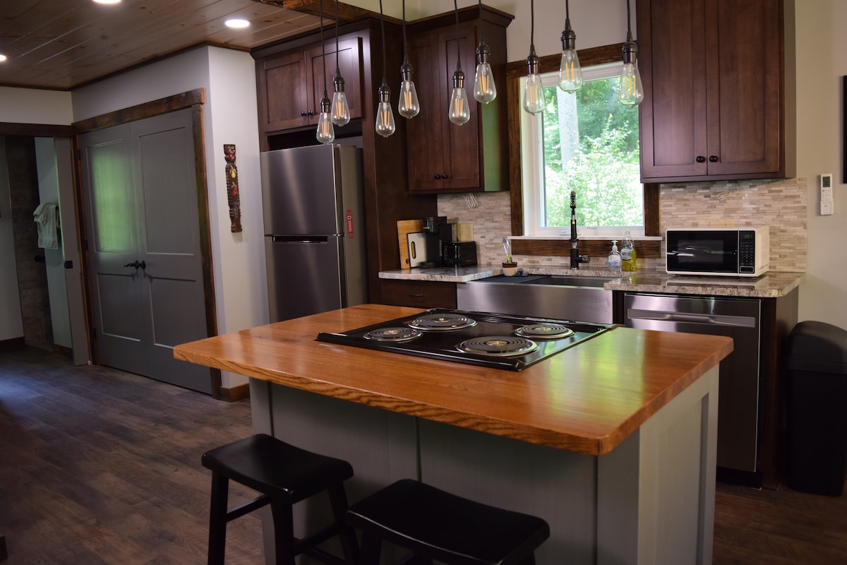 À ●20 minutes de Wooster, Millersburg, Berlin, Loudenville et Mt Hope, et à quelques minutes en voiture du parc d'État Mohican. ●Foyer et chaises sur le patio arrière. ●Construit en 2022 avec un style contemporain et des touches uniques partout. ●Situé dans la petite ville de Holmesville avec une pizzeria et le Blue Moon Bistro à proximité. Café en grains entiers de● qualité fourni.