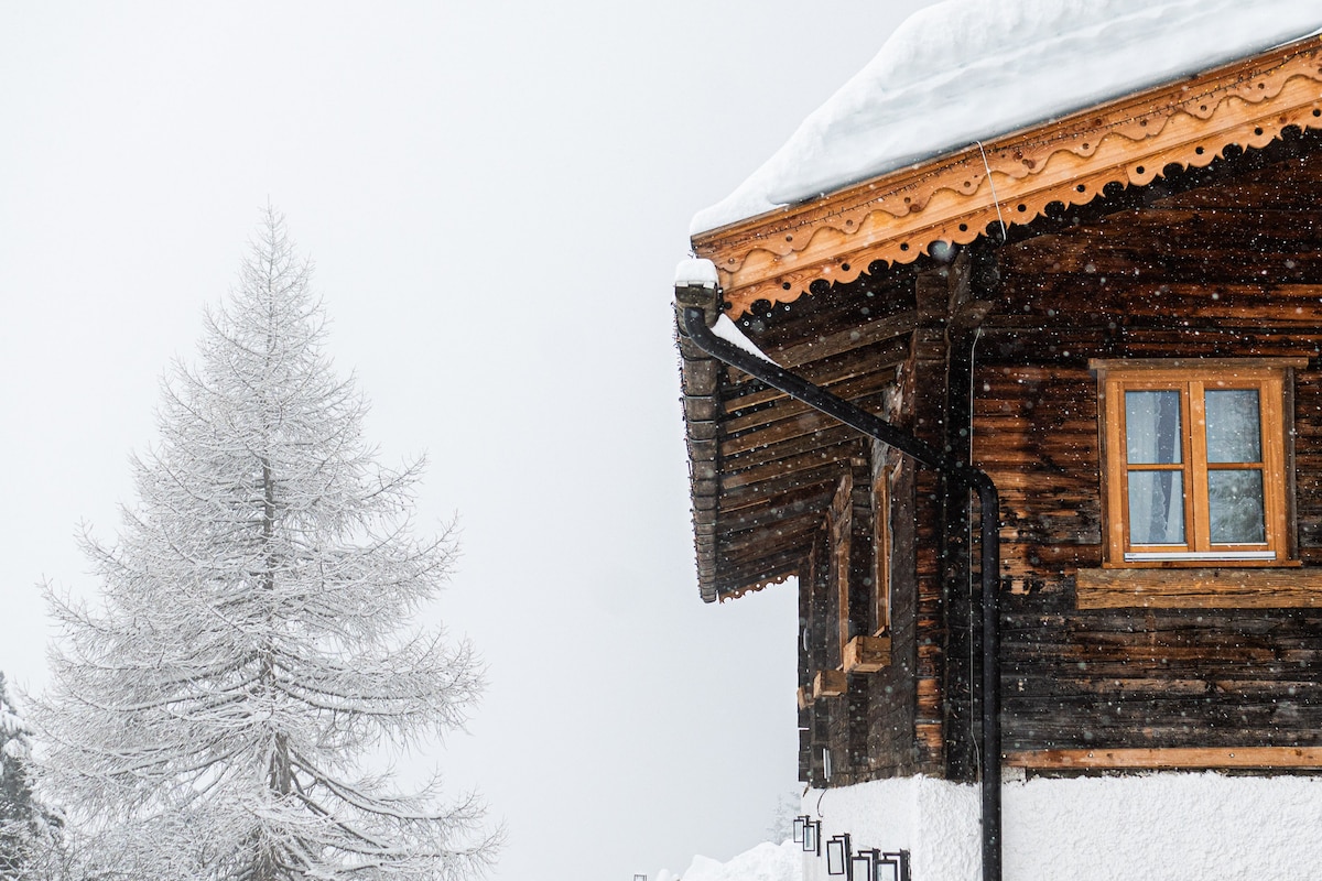 Refuge alpin rustique (Aste) dans le Tyrol au milieu de la montagne