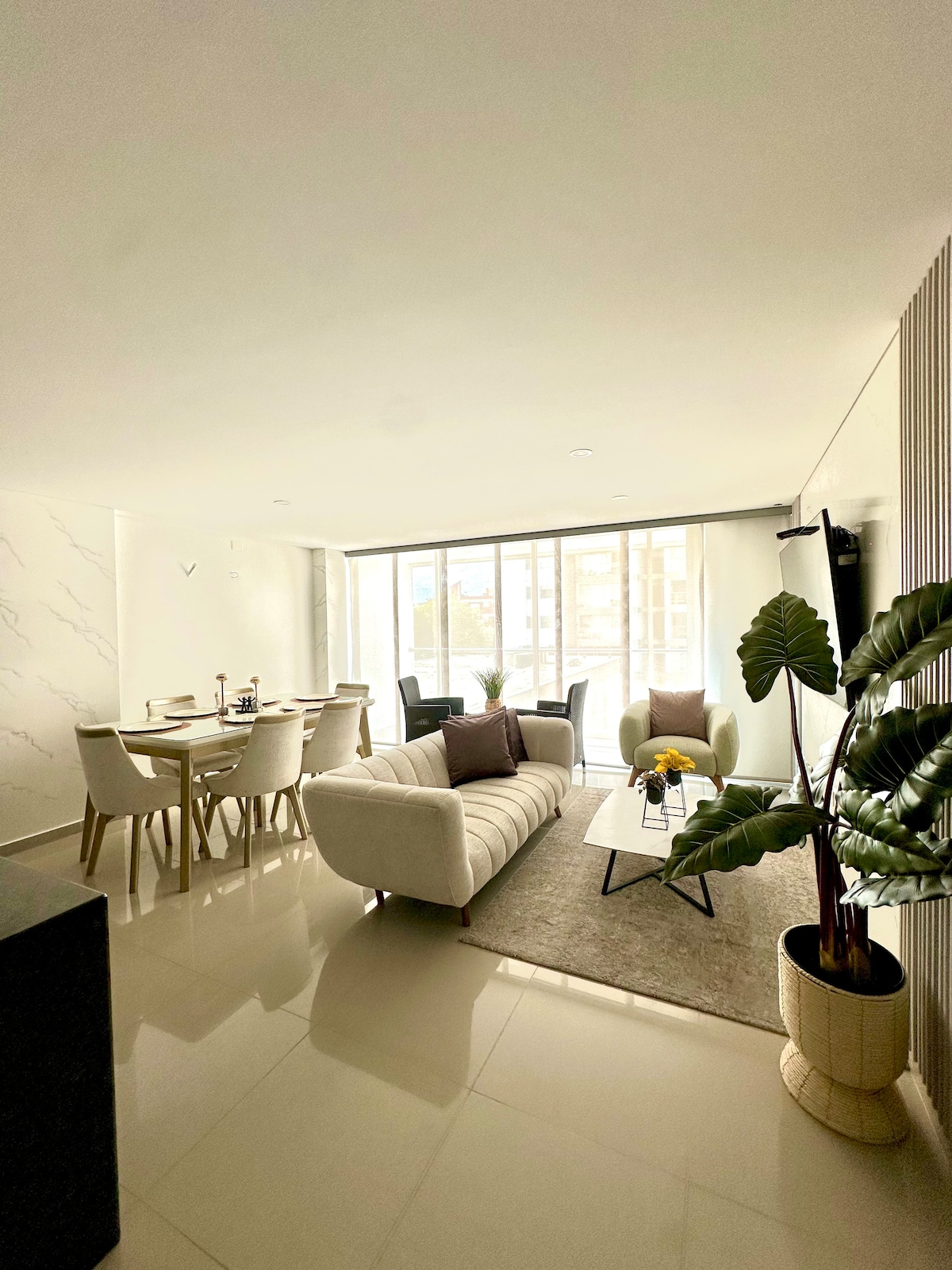 Excepcional apartamento ubicado cerca al aeropuerto, zona comercial, cerca a vías principales, con rutas de transporte a lugares turísticos; al lado del centro comercial San Pedro Plaza y San Juan Plaza. Cómodamente amoblado para que tú estadía sea placentera, con parking privado. En áreas sociales cuenta con piscina en la terraza, jacuzzi, sauna, turco, gimnasio, terraza bbq y zona de estar con excelente vista, arenero, plazoleta y cancha sintética. Una ubicación estratégica para tu visita.