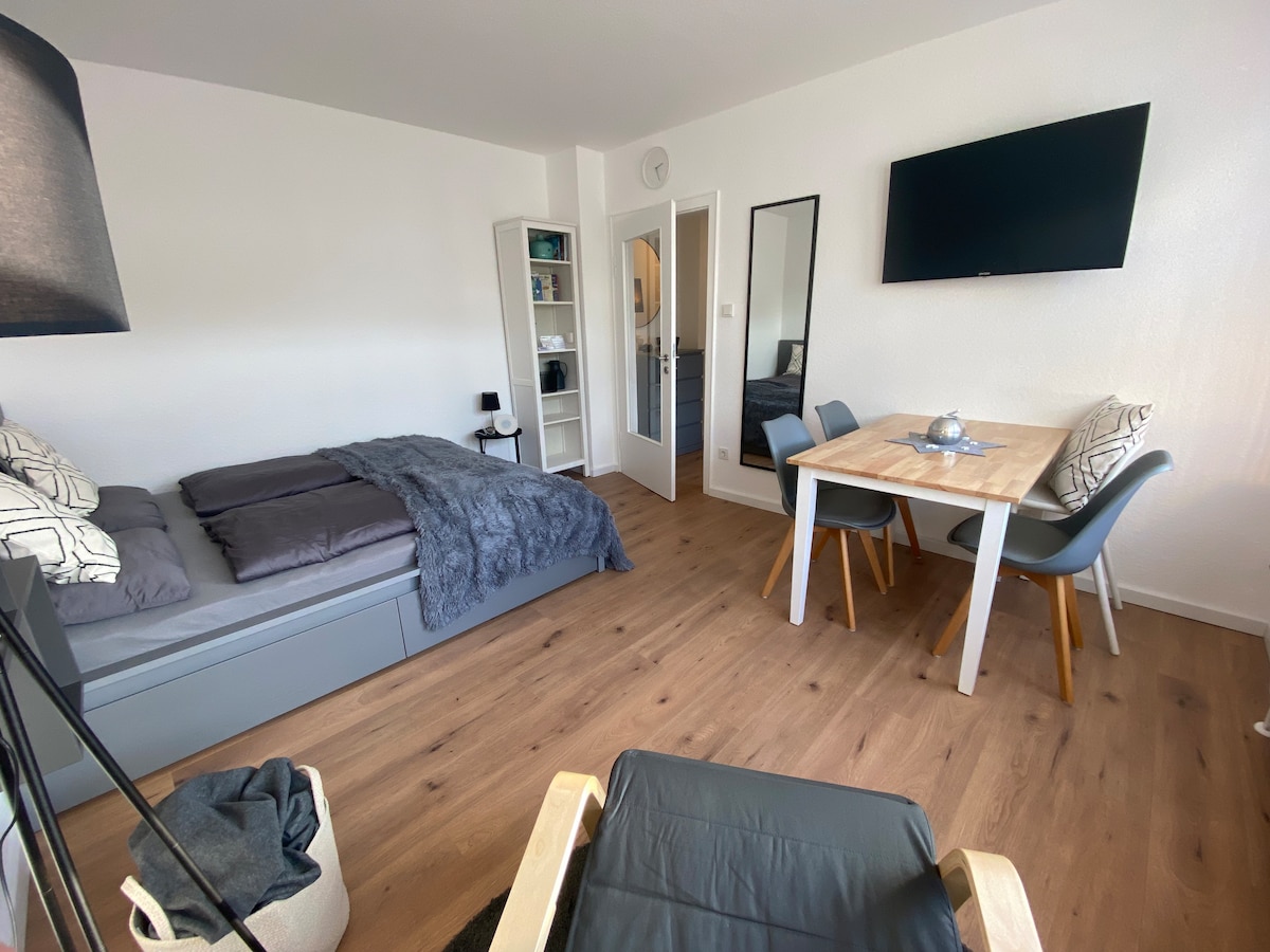 Vacances à la campagne reposantes dans les Siebengebirge ou séjour d'affaires agréable dans notre magnifique studio lumineux (env. 50 m²) dans un environnement calme avec entrée séparée et possibilité de s'asseoir à l'extérieur. L'appartement est situé dans la région montagneuse de Königswinter au pied de l'Ölberg et est le point de départ idéal pour des randonnées. Il est idéal pour une petite famille, les randonneurs ou les cyclistes. Il existe de nombreuses possibilités d'excursions dans les environs proches ou lointains.