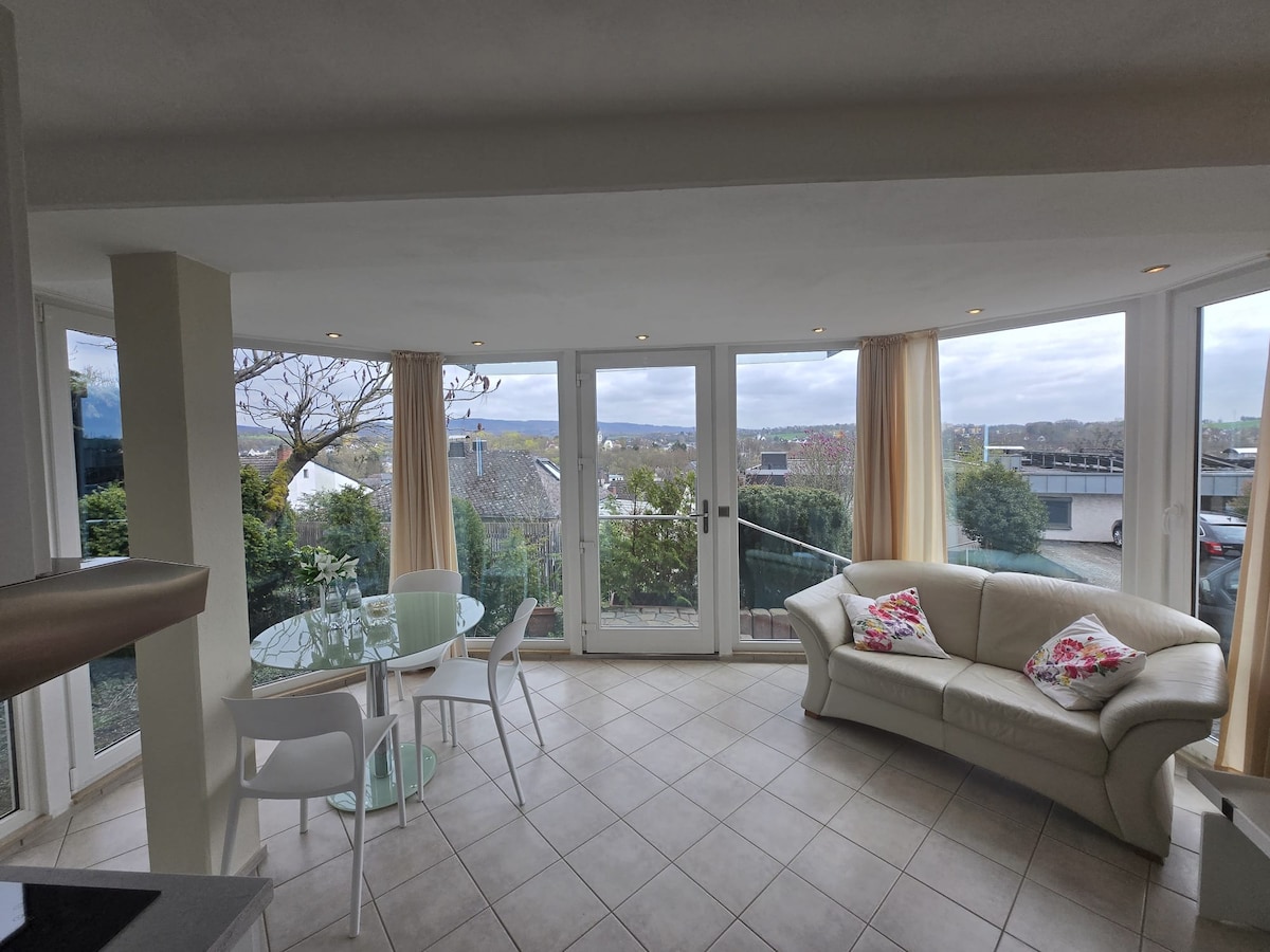 L'appartement 1 pièce avec salon et chambre à coucher peut accueillir 2-4 personnes. En outre, il y a une chambre supplémentaire au même étage, qui peut être ajoutée si nécessaire ou pour plus de 2 personnes. Vous avez une vue fantastique sur la vallée du Rhin et sur Coblence. Le calme, l'atmosphère moderne est confortable ,l'emplacement idyllique et naturel vous invitent à vous détendre et à vous relaxer.