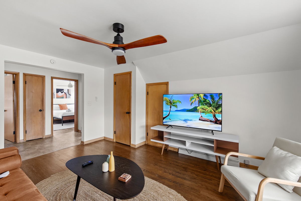 Bienvenue dans votre escapade à Milwaukee ! Situé dans le quartier de Bay View, vous êtes à distance de marche des meilleurs restaurants de la ferme à la table, des salles de concert, des foires d'art et des bières artisanales de la ville. De plus, les plages du lac Michigan, le Miller Park et le centre-ville sont à quelques minutes en voiture. L'emplacement est idéal. Le logement a été créé avec une ambiance du Midwest des années 70, avec des meubles en bois et un design moderne. Il dispose également d'une cuisine géante et d'une cour arrière avec barbecue. Nous avons hâte de vous accueillir !