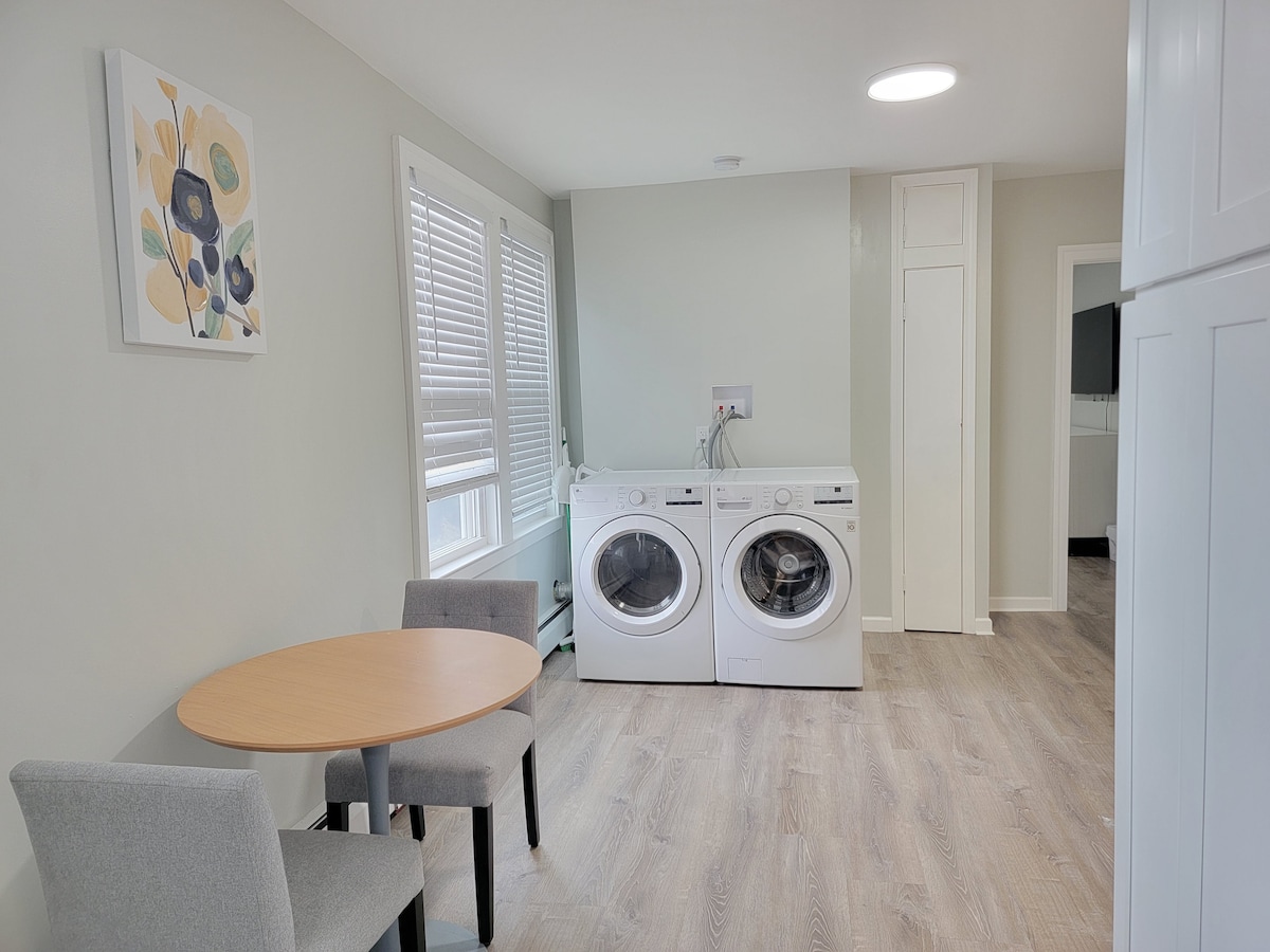 Cet appartement indépendant récemment rénové (sous-sol) dispose d'une entrée privée et d'une protection de sécurité Ring dans le quartier pittoresque et calme de la ville universitaire de New Britain, CCSU. Venez vous détendre, profiter des parcs locaux ou rendre visite aux membres de votre famille qui fréquentent la CCSU. Cet endroit a tout le confort de la maison. Comprend deux téléviseurs à écran plat dans la chambre et le salon avec Fire sticks (câble/films), salle de bain complète, kitchenette, buanderie, cheminée électrique, poste de travail, table de salle à manger pour manger, étudier et travailler sur des projets.