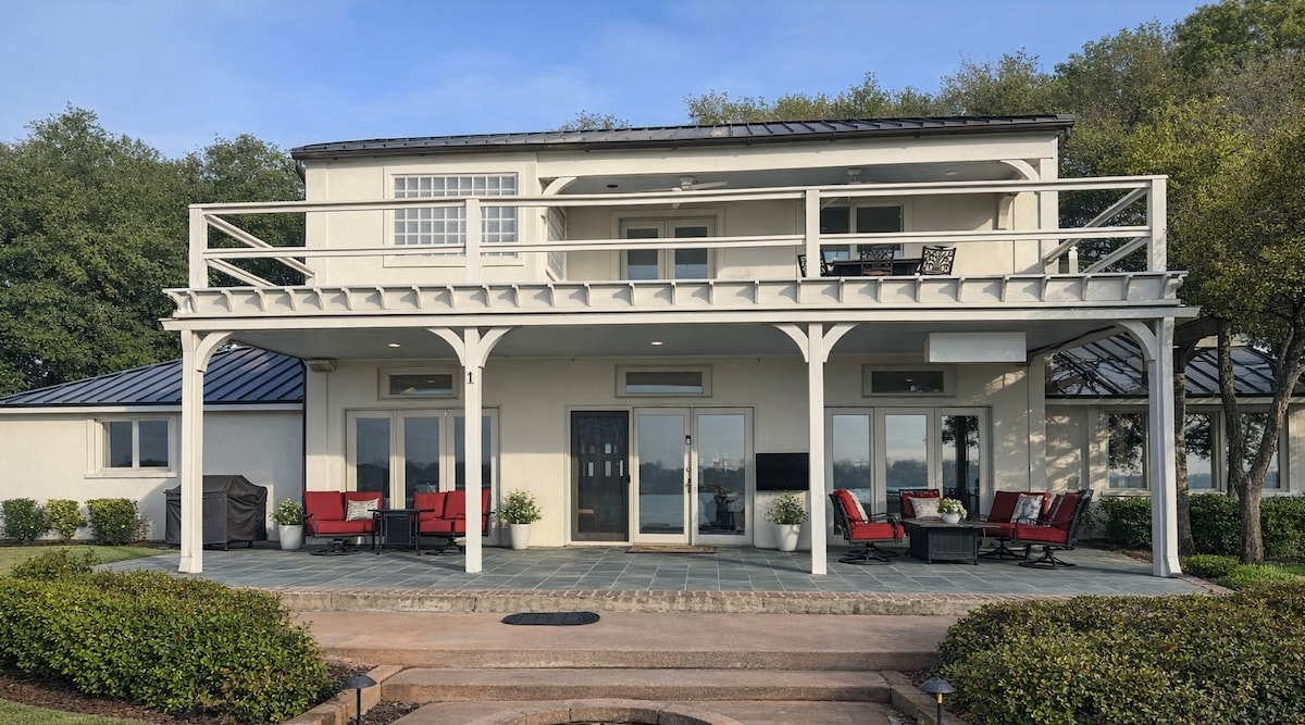 Designed to captivate, Sky View pulls you into its warmth with its expansive rooms, details, and unparalleled view. Featuring a bed swing on the pier, a well-furnished upstairs balcony, and oversized patio, Sky View is meant to draw you outdoors. So grab a drink and find your spot to relax. Whether it's the upstairs balcony or the bed swing on the pier, there's no bad seat in the house, especially as the sun sets over beautiful False River. Sky View is 40 minutes away from LSU Tiger stadium.