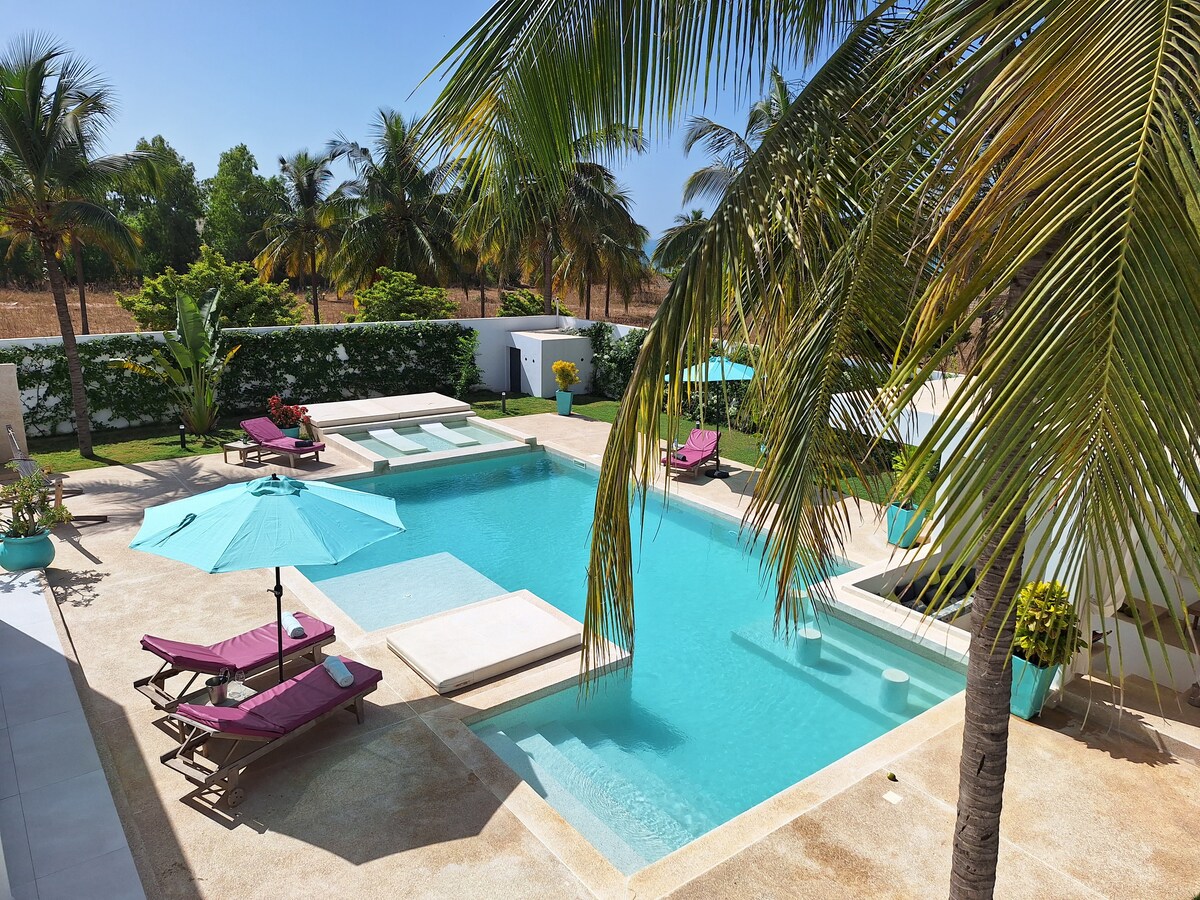 Bienvenue dans cette superbe villa de 3 chambres avec accès direct sur la plage de Nianing. Chaque chambre dispose de sa propre salle de bain attenante et d'une demi-salle de bain supplémentaire pour plus de commodité. La villa est équipée d'une cuisine moderne et d'un salon/salle à manger spacieux, parfait pour se détendre et se divertir. À l'extérieur, vous trouverez une grande piscine avec douche extérieure, ainsi qu'un coin salon, idéal pour profiter du cadre paisible. Une porte privée vous mène directement à la plage.