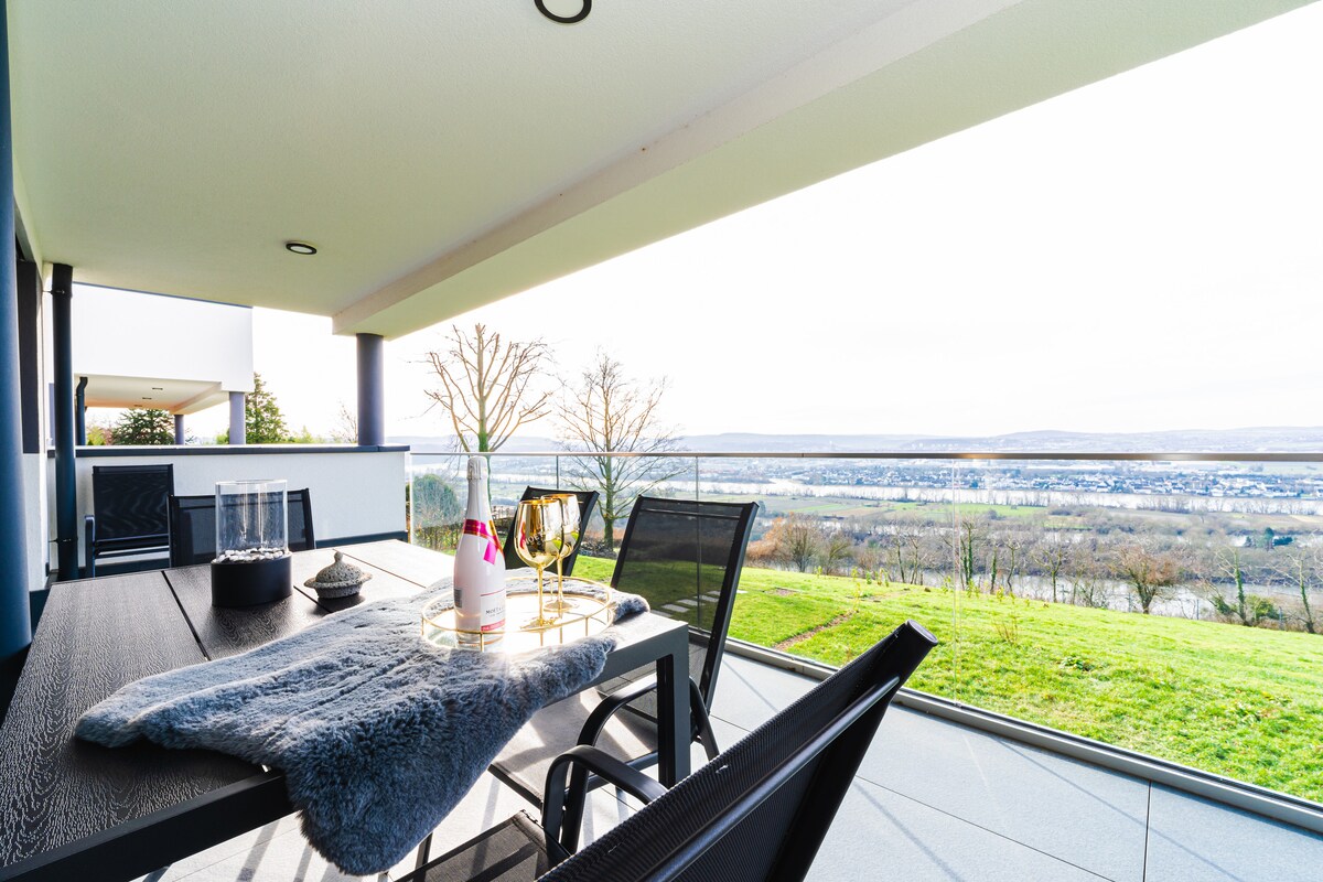 L'appartement 1 pièce avec salon et chambre à coucher peut accueillir 2-4 personnes. En outre, il y a une chambre supplémentaire au même étage, qui peut être ajoutée si nécessaire ou pour plus de 2 personnes. Vous avez une vue fantastique sur la vallée du Rhin et sur Coblence. Le calme, l'atmosphère moderne est confortable ,l'emplacement idyllique et naturel vous invitent à vous détendre et à vous relaxer.