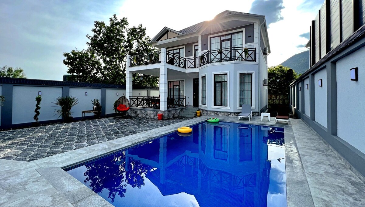 Gabala Dreams est une villa de deux étages avec grand jardin, chambres avec vue sur la montagne et terrasse avec vue sur le jardin. Il y a une chambre , une cuisine et un salon au premier étage. Il y a une chambre , une salle de bain et un balcon au deuxième étage. La cuisine regorge d'équipements dont vous avez besoin. Vous pouvez vous détendre avec la télévision connectée dans le salon et une connexion Wi-Fi haut débit dans tout le lieu de la maison. Il y a une salle de bain et une autre chambre au deuxième étage. Il y a également un balcon avec vue imprenable au deuxième étage.