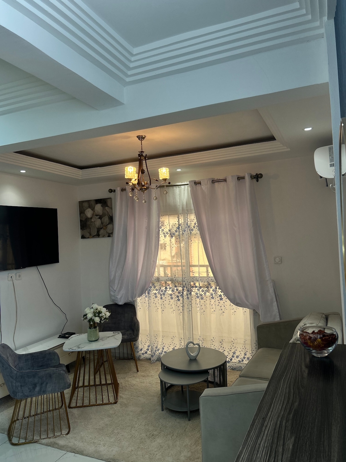 GROUPE ÉLECTROGÈNE Bienvenue chez nous où confort et luxe se rencontrent pour vous offrir un séjour inoubliable ! Vous résiderez dans l’appartement A d’un immeuble Cosy et calme, idéalement situé près de la route et du centre-ville. Climatisation ds tout le logement. Cuisine équipée, 2 chambres avec sdb, eau chaude, charmant living, terrasse et coin repas. Parking gratuit, WIFI, TV canal +, IPTV, concierge 24h, Compteur électrique PRÉPAYÉ à recharger Nombreux commerces à proximité