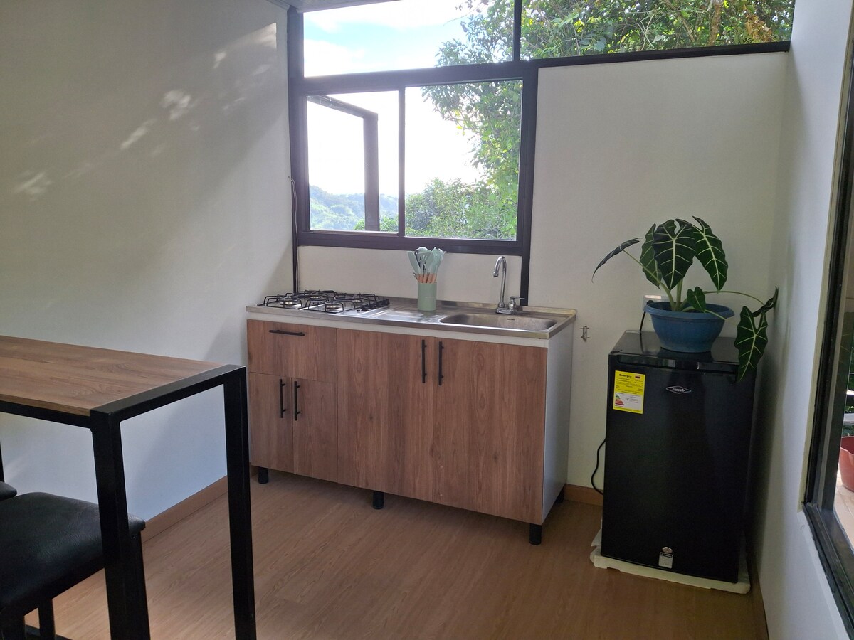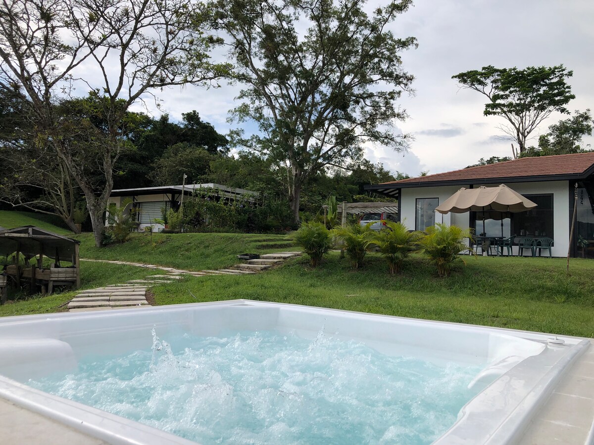 *Chalet d'hôtes dans une zone spéciale pour l'observation des oiseaux *Piscine *Capacité d'accueil maximum de 3 personnes. Vous pouvez choisir entre 1 lit double (chambre) et 1 lit simple (salon) ou 3 lits simples (2 dans la chambre et 1 dans le salon). *Située à 1h30 de Bogotá par la route Medellín - Bogotá (Après la Vega) * Salon - salle à manger - cuisine spacieuse, confortable et entièrement équipée pour ceux qui aiment préparer leurs propres repas. *Espaces extérieurs avec hamacs