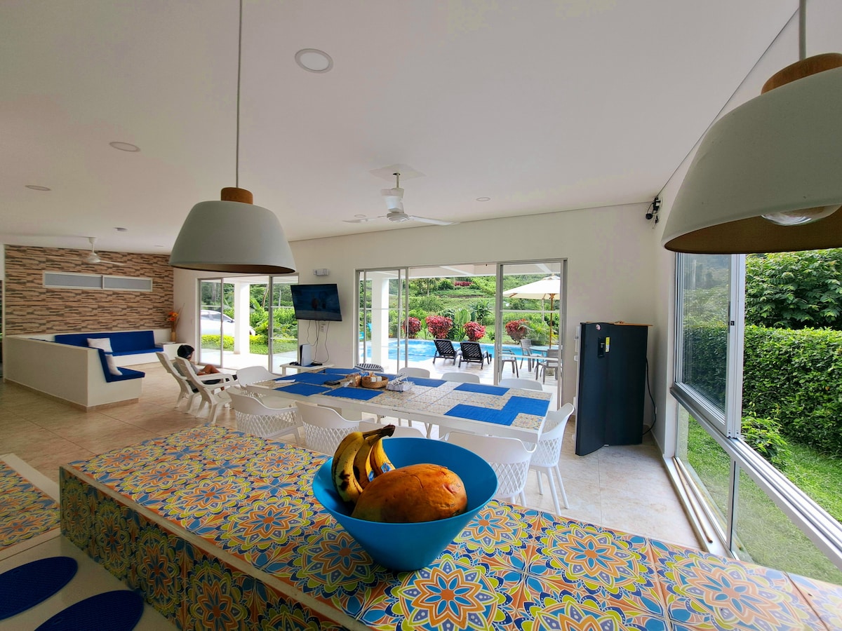 NO SE PERMITEN FIESTAS. Espacio ideal para familias, con el mejor clima a solo 1:40 hr de Bogota! Condominio ubicado entre Villeta y La Vega. Casa moderna con todas las comodidades y rodeada de naturaleza. Cuenta con 5 habitaciones , 6 baños, BBQ, Piscina con Playita y Jacuzzi, Canchita de Futbol, Cama elástica, juegos de mesa, Bolirana, zona para fogatas y cancha de pickleball. La casa cuenta con paneles solares e internet satelital por lo cual es perfecta para trabajar sin interrupciones!