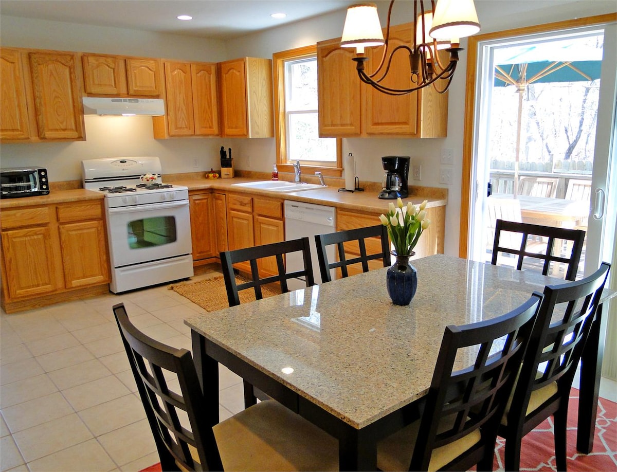 Charmant chalet de Cape Cod sur une route semi-privée avec vue sur l'océan et Vineyard Sound. Rénovations terminées à la mi-juillet 2020. Trois chambres, 2 salles de bain privées attenantes, 1 salle de bain semi-privée, cuisine entièrement équipée, patio avec barbecue, foyer au gaz, télévision par câble, Internet Wi-Fi, grande terrasse au deuxième étage, climatisation. Près du ferry Vineyard, de la gare routière et de la ville. Location saisonnière. Veuillez remplir une demande de réservation pour déterminer le loyer en vigueur aux dates demandées.