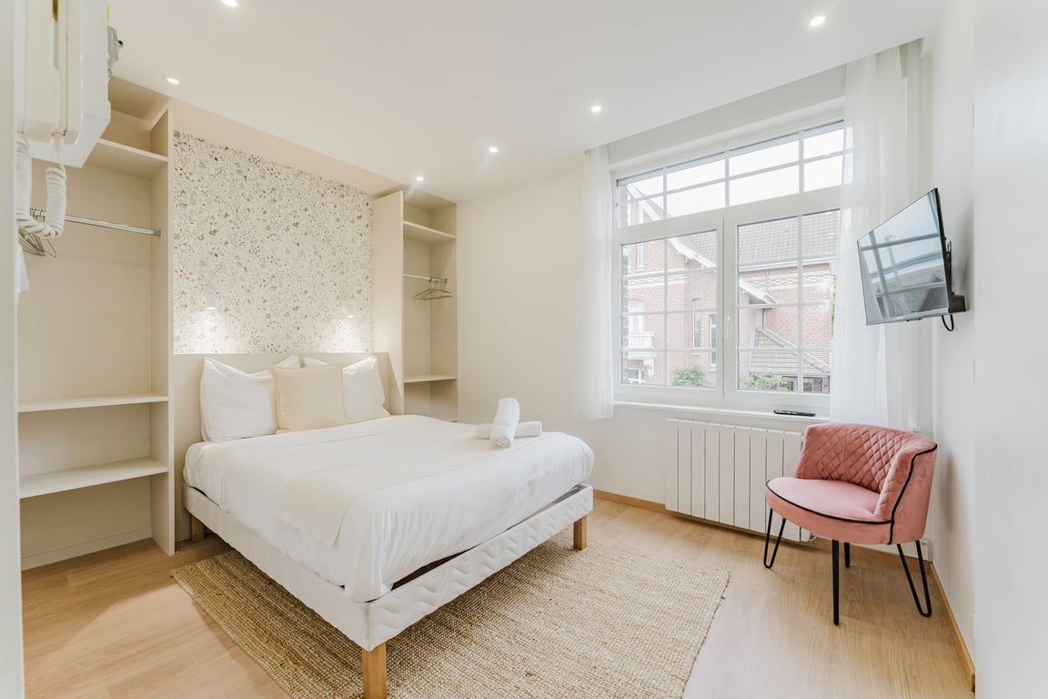 Ce charmant appartement est situé dans un quartier calme et résidentiel de La Madeleine, avenue Foubert. Il est au 3ème étage sans ascenseur. Vous serez aux portes de Lille, les deux gares sont facilement accessible en quelques minutes à pied. Le logement est chaleureux, bien équipé et dispose même d'une terrasse. Idéal pour visiter la région et/ou pour vos voyages d'affaires !