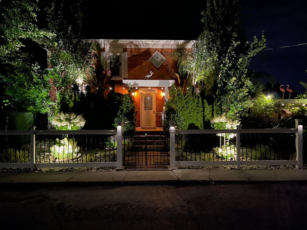 Situé à l'avant de la maison centenaire d'Anthony's Gardens, entouré de plantes et d'arbres tropicaux exceptionnellement grands. Il dispose d'un grand patio avant privé, fermé et sans danger pour les chiens, avec un barbecue au gaz naturel. Garez-vous juste à côté de ce logement. À distance de marche de tout, y compris les commerces, la plage, le lac, les restaurants et le théâtre. Le logement est totalement complet pour de courtes visites, comprend tout comme une télévision à écran plat de 50 pouces, Fire Stick et Netflix, une grande douche à l'italienne, la climatisation, un foyer électrique.