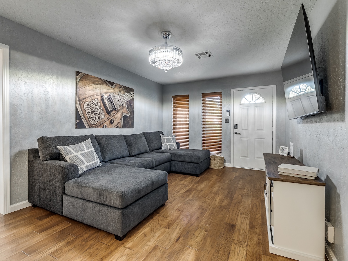 Maison lumineuse et magnifiquement rénovée à Moore, OK avec un mobilier et une décoration élégants et confortables partout. Accès extrêmement facile aux épiceries, magasins, restaurants, bars, parcs et accès facile à l'I-35. Cette maison a été rénovée avec un tout nouveau plancher, des salles de bains, une cuisine et des espaces ouverts lumineux pour passer du temps de qualité avec vos amis et votre famille. Que vous soyez en ville pour affaires ou pour des vacances en famille, c'est la maison qu'il vous faut. »
