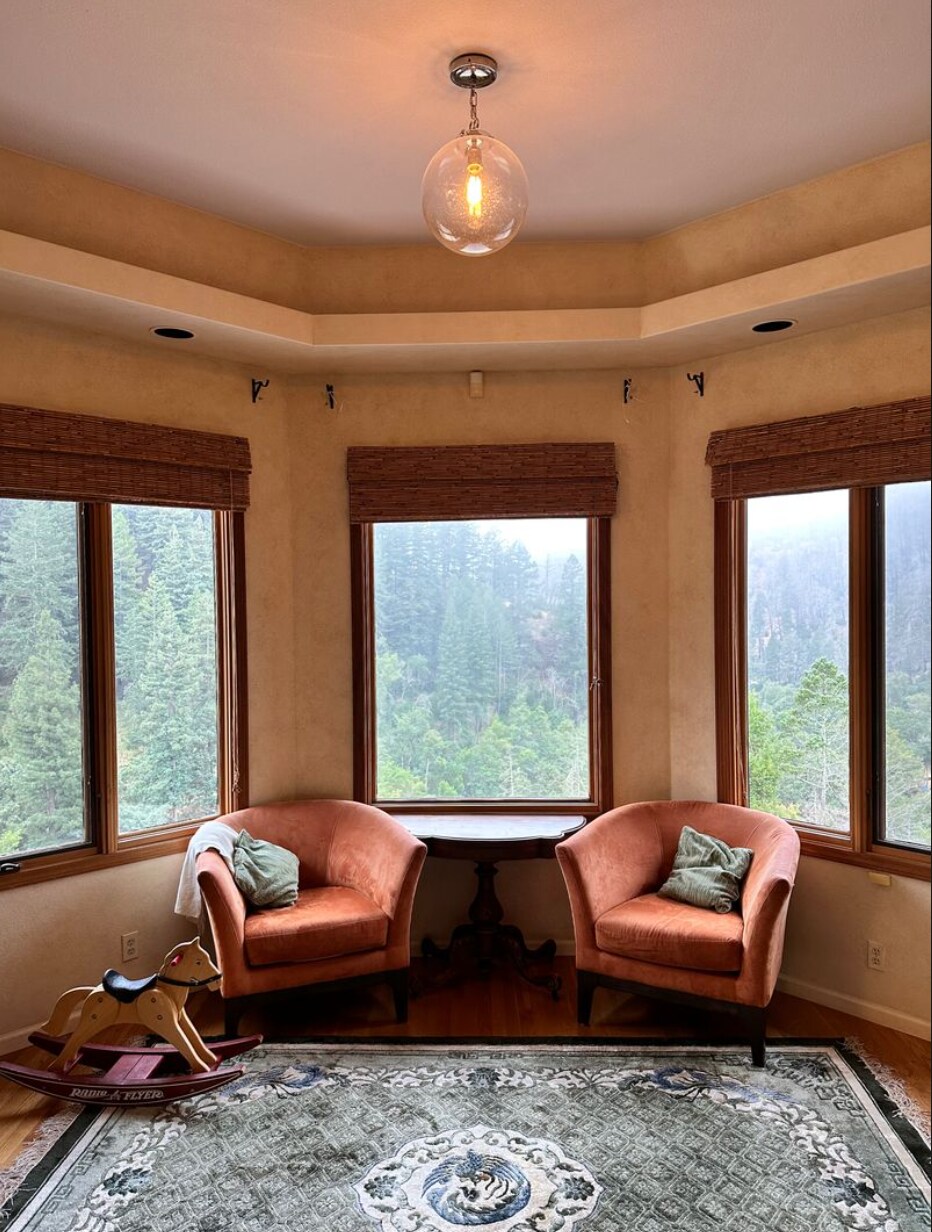 La suite est au 2e étage avec accès privé. Design ForestCore magique. Chambre principale avec lit Queen Size, 1 salle de bain avec douche et salon avec lit Queen Size escamotable Murphy, salle à manger pour 6 personnes et kitchenette. Matelas pneumatique également disponible pour plus de 4 personnes. Nous sommes sur 3,5 acres sur une route de gravier nichée dans les séquoias. Grand parking, à 2 min à pied de la rivière Smith, à 10 min en voiture des sentiers de randonnée et des parcs nationaux de Redwood. À 20 min en voiture de la plage. Équitation à proximité pour des promenades en forêt et sur la plage (réservation requise)