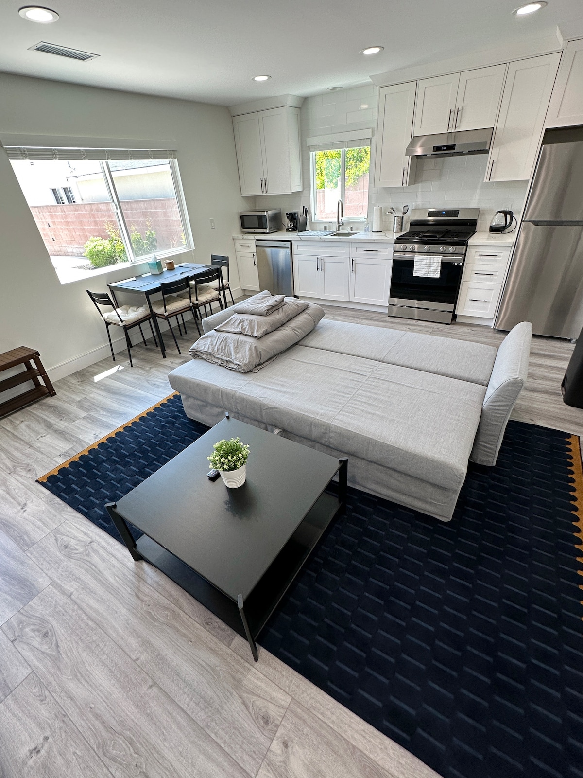 Tout nouveau logement rénové avec 1 chambre et 1 salle de bains équipée d'une cuisine fonctionnelle. La propriété est située dans un environnement familial calme situé à la frontière de West Covina et de Baldwin Park. L'espace comprend un tout nouveau canapé modulaire, une télévision connectée 4K de 55 pouces et un tout nouveau matelas Sealy pour vous assurer une bonne nuit de sommeil. L'emplacement est central à divers endroits. À 19 miles du centre-ville de Los Angeles À 25 miles des studios Universal À 25 miles de Disneyland Park. À 37 km de l'aéroport international de l'Ontario À 35 miles de LAX.