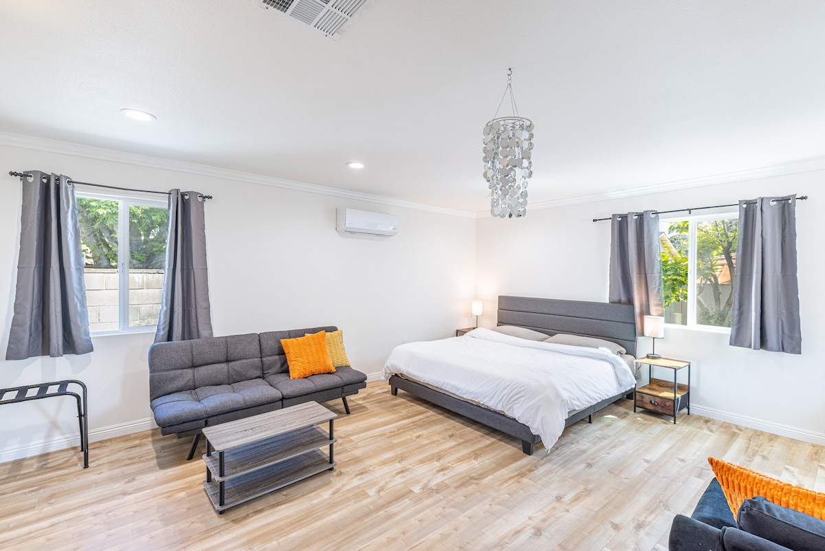 2 chambres/1 salle de bain récemment construites près de Los Angeles avec une cuisine complète, des finitions modernes et une allée privée avec un grand parking. Profitez du confort et de l'intimité dans un emplacement privilégié à proximité des entrées des autoroutes 10 et 605, des meilleurs restaurants, des épiceries, de Target et d'une station de recharge Tesla. Idéal pour les voyageurs en solo ou les petites familles à la recherche de confort et de style. Séjournez dans un lieu où commodité et confort se rencontrent, votre base idéale à Los Angeles.