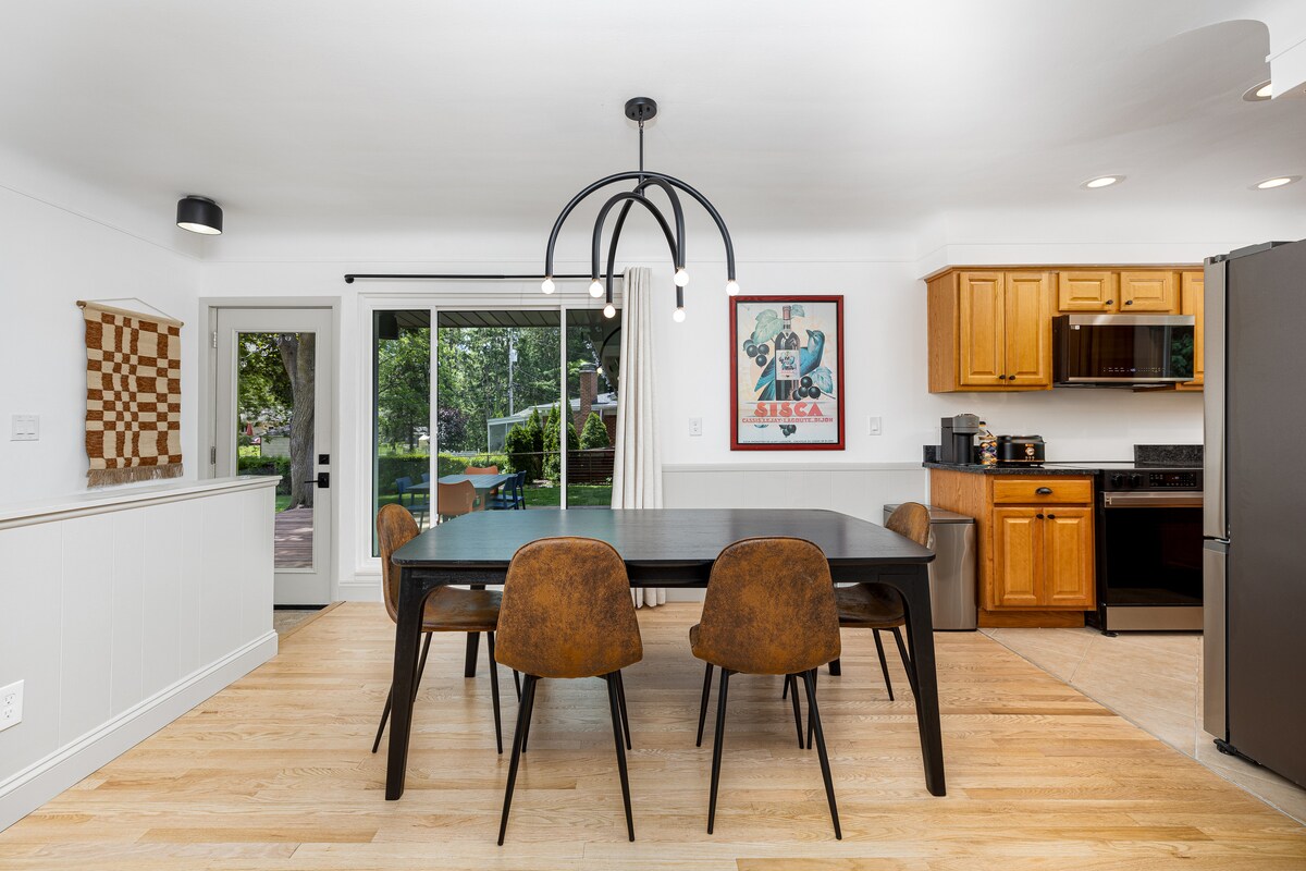 De la place pour toute l'équipe ! Notre maison peut accueillir confortablement 8 personnes : *3 chambres, 2,5 salles de bain *2 espaces de vie extérieurs *2 salons Notre maison offre tout ce dont votre groupe a besoin : 3 chambres, dont 2 lits King Size et de l'espace pour 8 personnes. Conçu avec soin pour le plaisir du groupe avec 2 salles de séjour, 2 espaces de vie extérieurs, un grand jardin, des jeux familiaux et plus encore. Idéalement situé : à 2 min du Vieux Village, 4 min du centre-ville, 6 min de la station balnéaire de St. John's, et accès facile à l'autoroute entre Ann Arbor et Detroit.