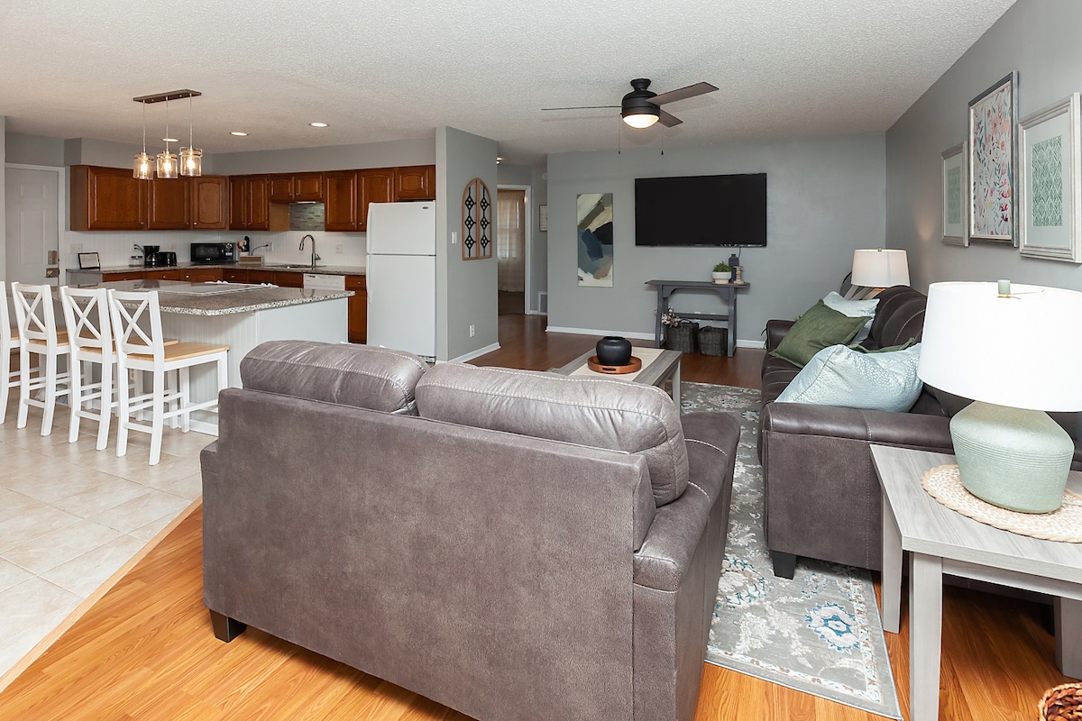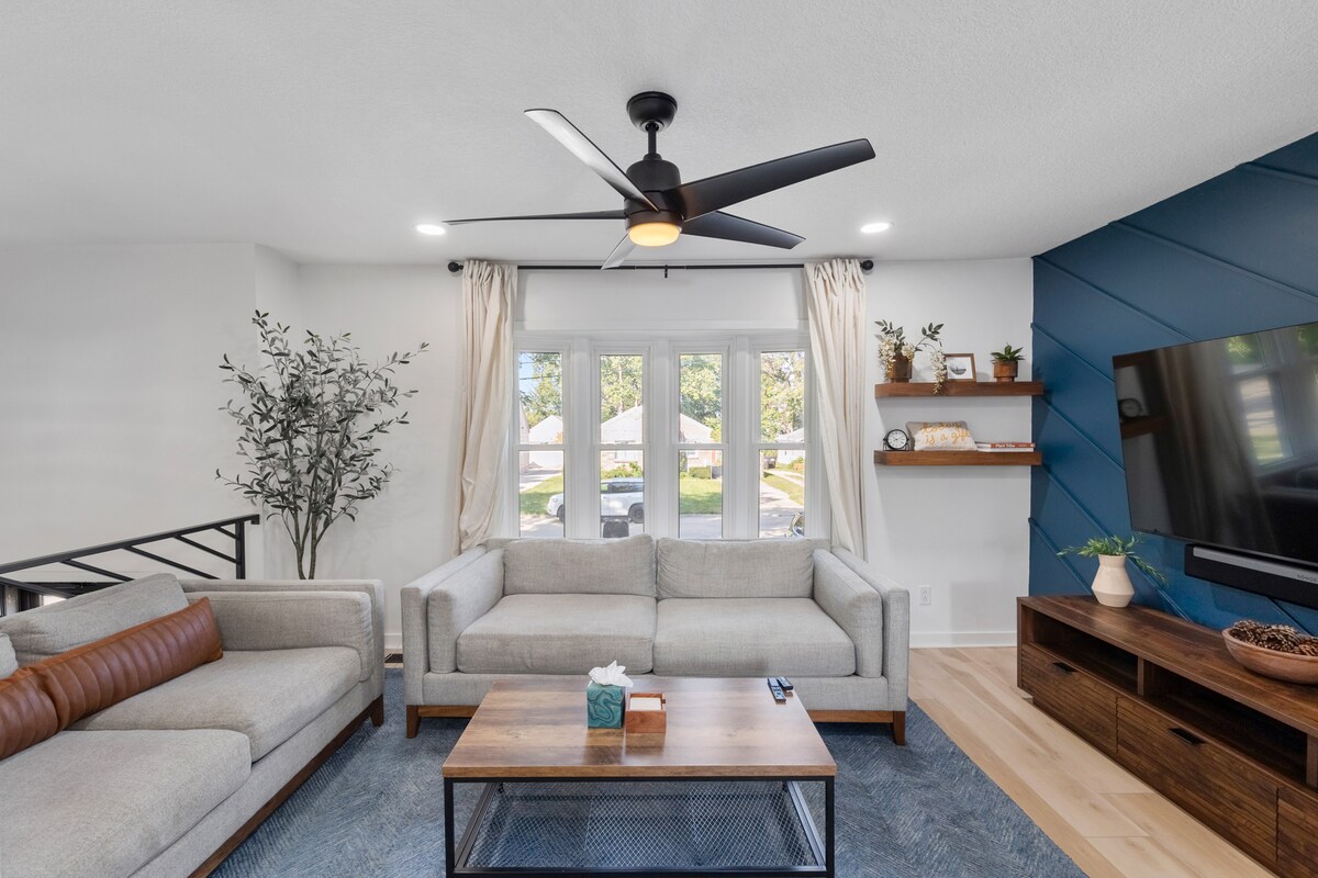 Votre famille sera proche de tout lorsque vous séjournerez dans cette maison située au centre de West Des Moines, juste à côté de l'I-35. Une piste cyclable menant aux parcs et aux commerces locaux traverse le jardin. Avec un mobilier confortable et des chambres spacieuses, c'est l'endroit idéal pour se réunir entre amis ou en famille. À quelques minutes du centre-ville de West Glen ou du centre commercial Jordan Creek ! Pendant votre séjour, vous aurez accès à 4 chambres et 4 salles de bain, une cuisine entièrement équipée, des salons spacieux et une grande terrasse avec gril.