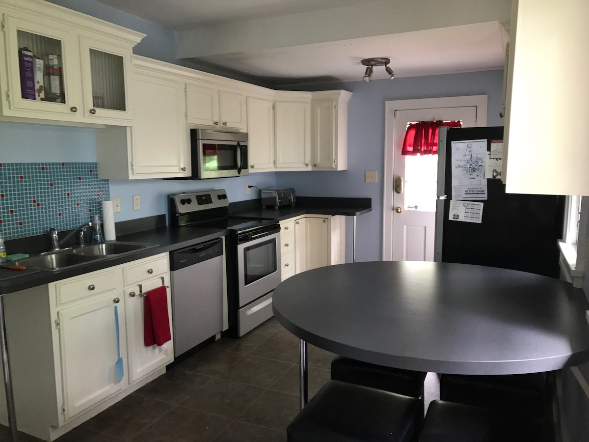 Bienvenue au Blue & Gold Bungalow, une retraite de 3 chambres fraîchement décorée à moins d'un mile de Notre Dame, Saint Mary 's et Holy Cross. Promenez-vous ~15 minutes (0,8 mi) jusqu'au stade pour la journée de match, ou dirigez-vous 20 minutes à pied vers les restaurants et la promenade fluviale du centre-ville de South Bend. Nous avons des matelas Casper, une connexionWi-Fi rapide, un contrôle de la température de la maison intelligente et une cour clôturée pour la queue, ce qui fait du bungalow la rampe de lancement idéale pour les familles, les amis ou les visiteurs du campus à la recherche d'un séjour inoubliable et haut de gamme !