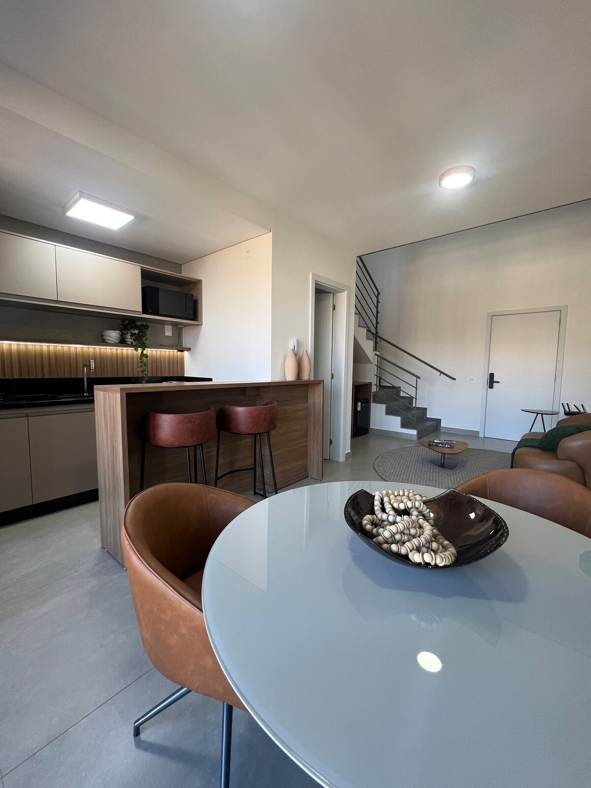 Duplex plat (catégorie de luxe) de 61 m2, balcons, télévision et salle à manger, grande suite avec télévision de 50 pouces et chauffage. Belle décoration, spacieux et confortable, plein de charme de bon goût. *Différences - Service de concierge ; - Cafetière avec café inclus pour la période. - Linge de lit et de bain Kasters - Sèche-linge,peignoir et pantoufles. - Internet 500 Mo. - Options : 2 lits simples ou un lit double king-size - Coworking - Barbecue -2 places couvertes - Arrivée et départ flexibles