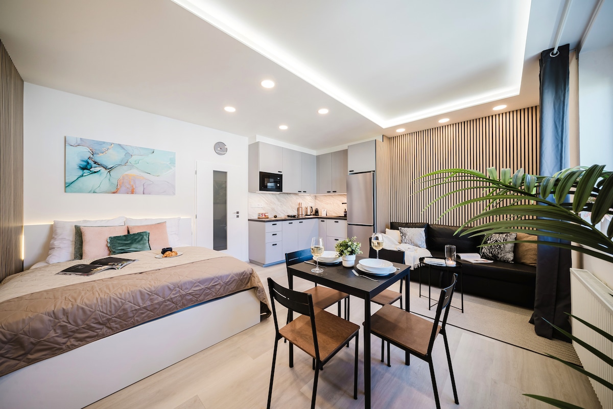 Vyšehrad Studio w/ 80″ TV • Netflix • 250Mbs WiFi