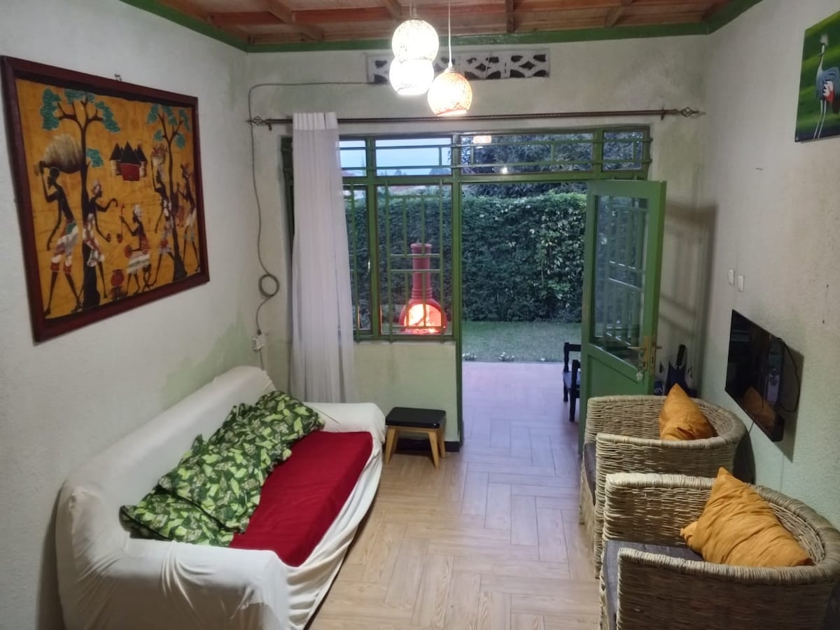 Spacieux appartement de deux chambres avec un salon et un coin cuisine confortables, une salle de bains privée et un joli jardin. Situé sur la même propriété que notre maison familiale, vous aurez la chance de découvrir l'authentique hospitalité rwandaise de notre famille. Rassurez-vous, nous attachons une grande importance à votre vie privée, mais nous sommes toujours disponibles pour vous aider avec tout ce dont vous pourriez avoir besoin. Situé dans l'un des quartiers les plus sûrs de Musanze, vous trouverez notre quartier résidentiel propre, beau et accueillant.