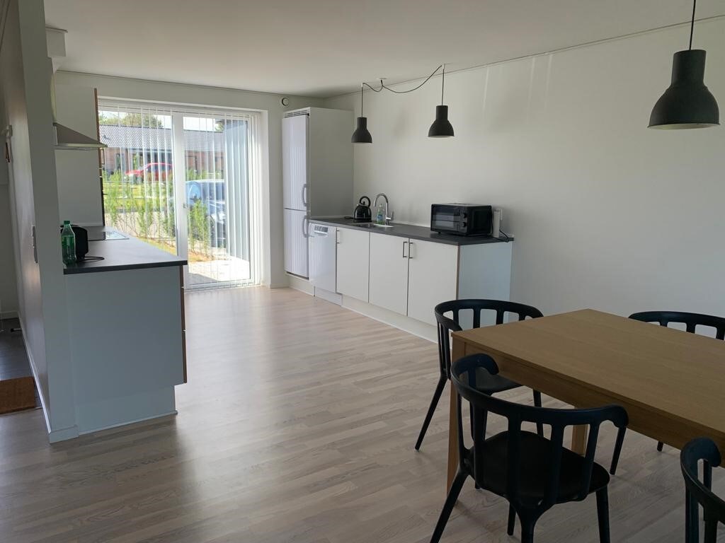Appartement jusqu'à 6 personnes + enfants. Entrée et salle de bain privées. Lit double 140 x 200 cm + lit junior (140 cm) Chambre supplémentaire au 2ème étage : lit double (180x200cm) + 2 lits simples (70x200). (Disponible si > 2 adultes). Il y a une petite cuisine neuve avec four, 2 plaques de cuisson, lave-vaisselle, réfrigérateur et machine à café (capsules gratuites). Il y a un accès gratuit au jardin, au barbecue à gaz, à la cuisine extérieure simple et aux lacs. Un permis de pêche peut être acheté en ligne pour 50 kr. Situé dans un environnement pittoresque entre 2 lacs, près d'Odense.