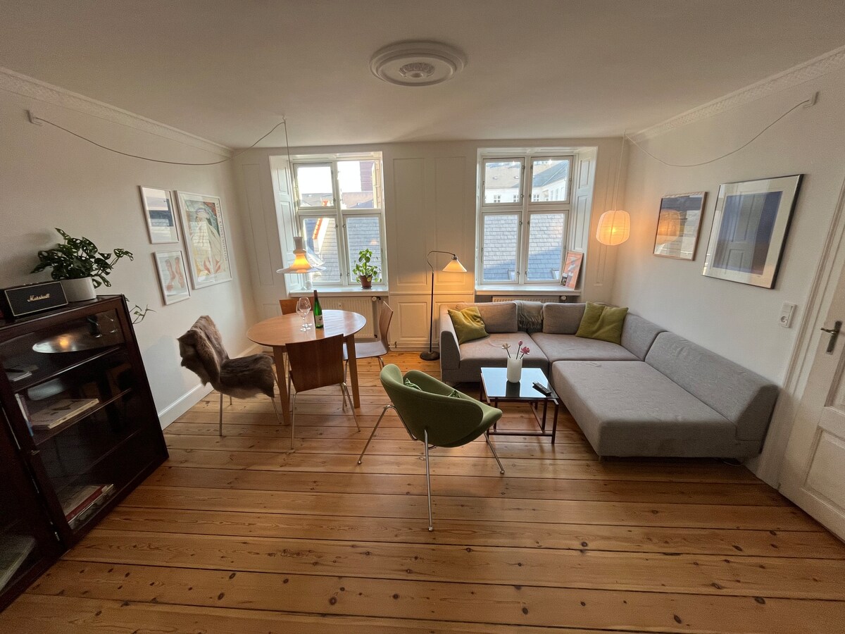 Beautiful 3 bedroom two-story flat in Nyhavn - the heart of Copenhagen City. Multiple attractions within walking or biking distance. The apartment has room for up to 9 people. Perfect for family vacations, city breaks, and business trips. We provide; ✔ Free Wi-Fi ✔ Fresh towels ✔ Linen and ✔ Basic shower ✔ And cooking essentials for your comfort and convenience.
